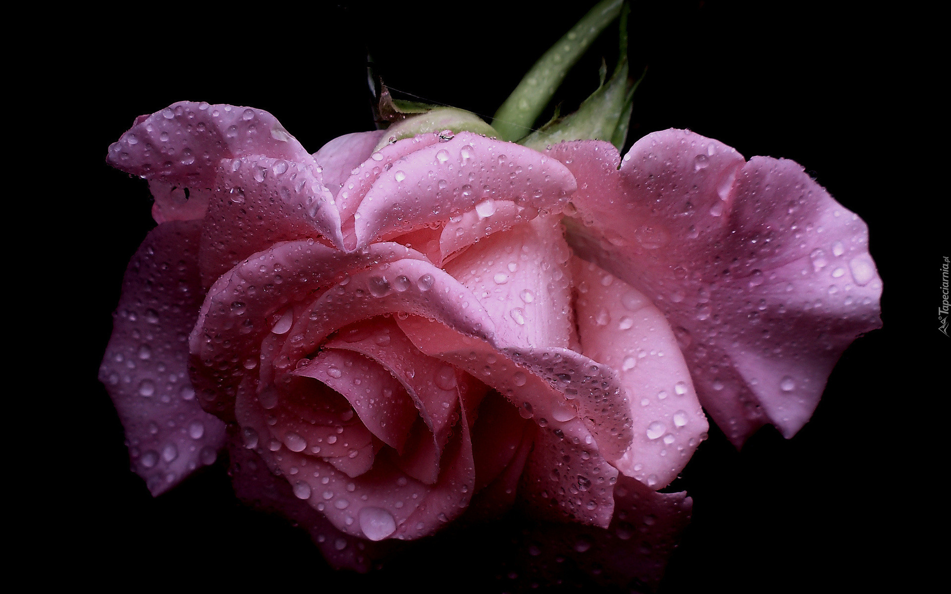 Edytor tapety: Fioletowa, Róża, Krople, Deszczu