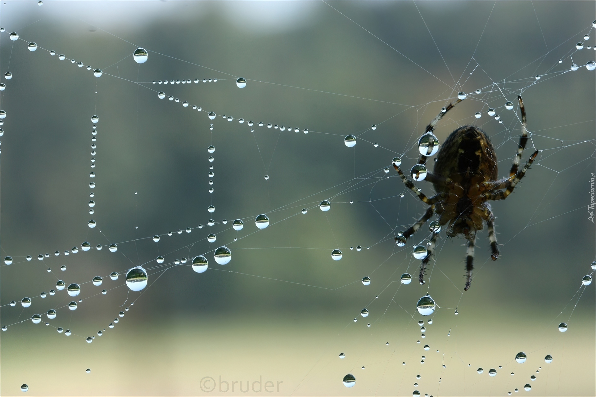 Edytor tapety: Pająk, Krzyżak, Krople, Deszcz, Pajęczyna