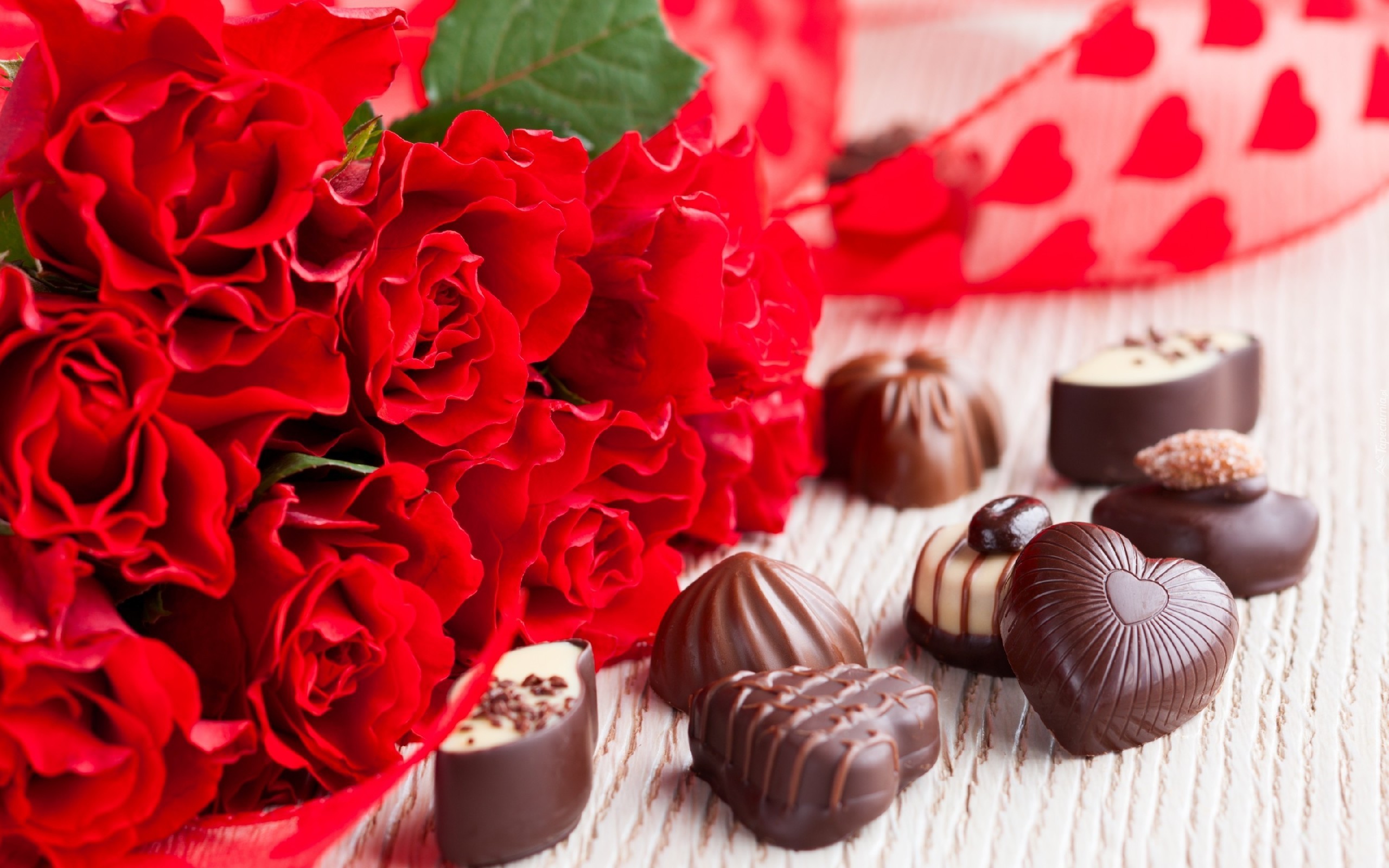 Edytor tapety: Walentynki, Bukiet, Róż, Czekoladki