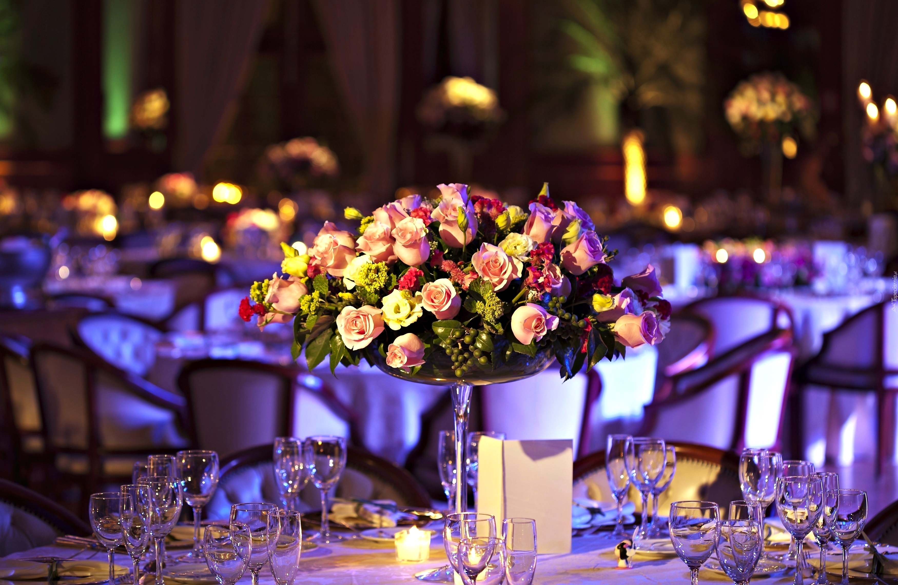 Edytor tapety: Różowe, Róże, Bukiet, Kieliszki