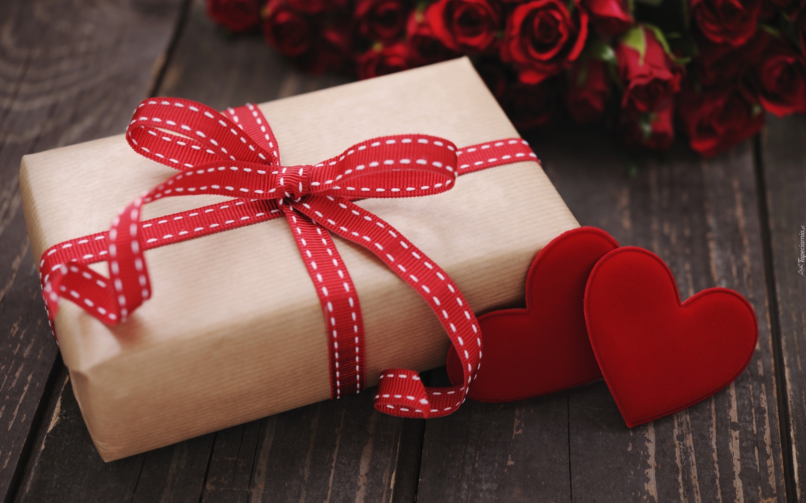 Edytor tapety: Walentynki, Prezent, Czerwone, Serduszka