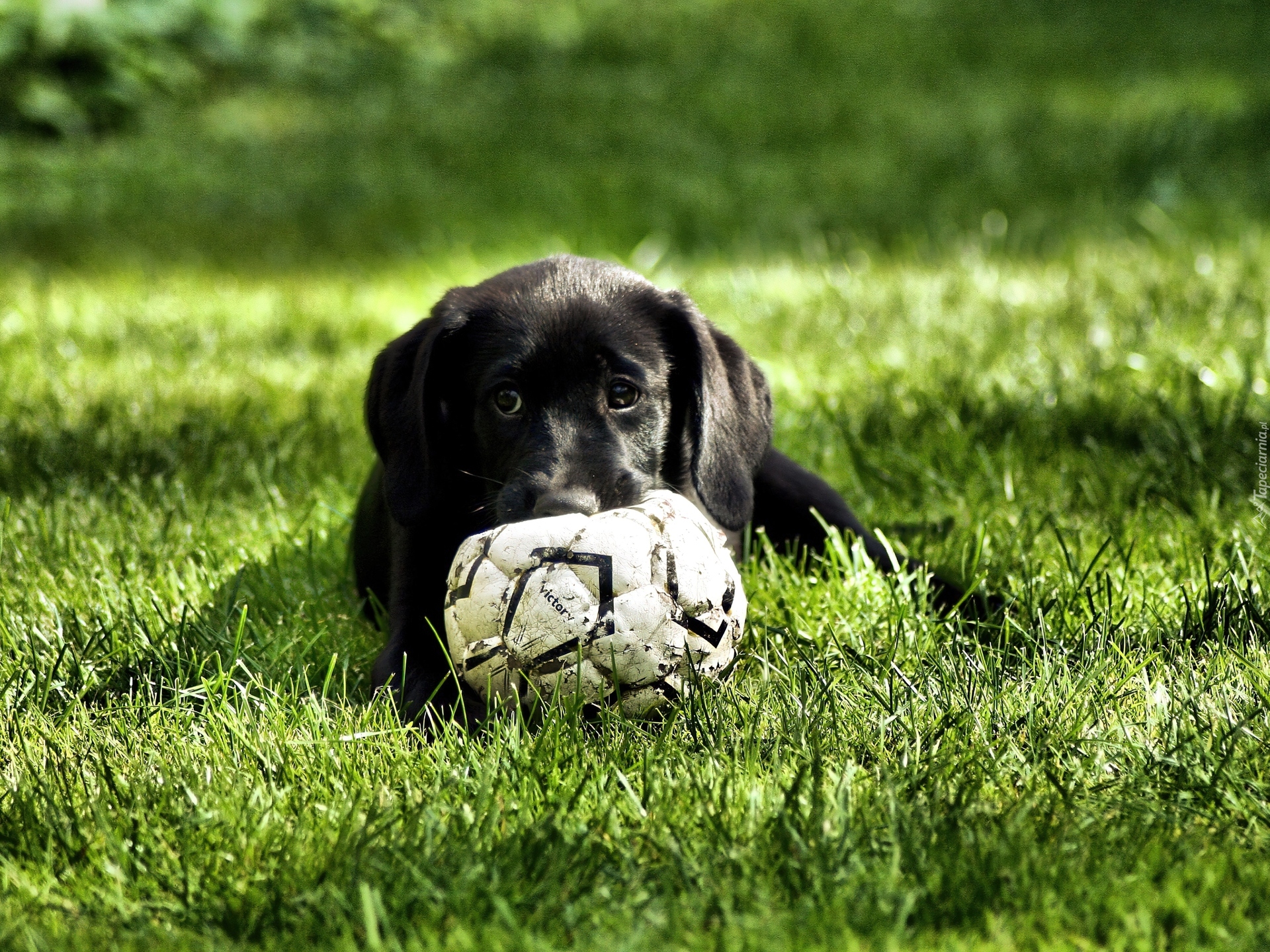 Edytor tapety: Czarny, Labrador Retriever, Szczeniak, Piłka