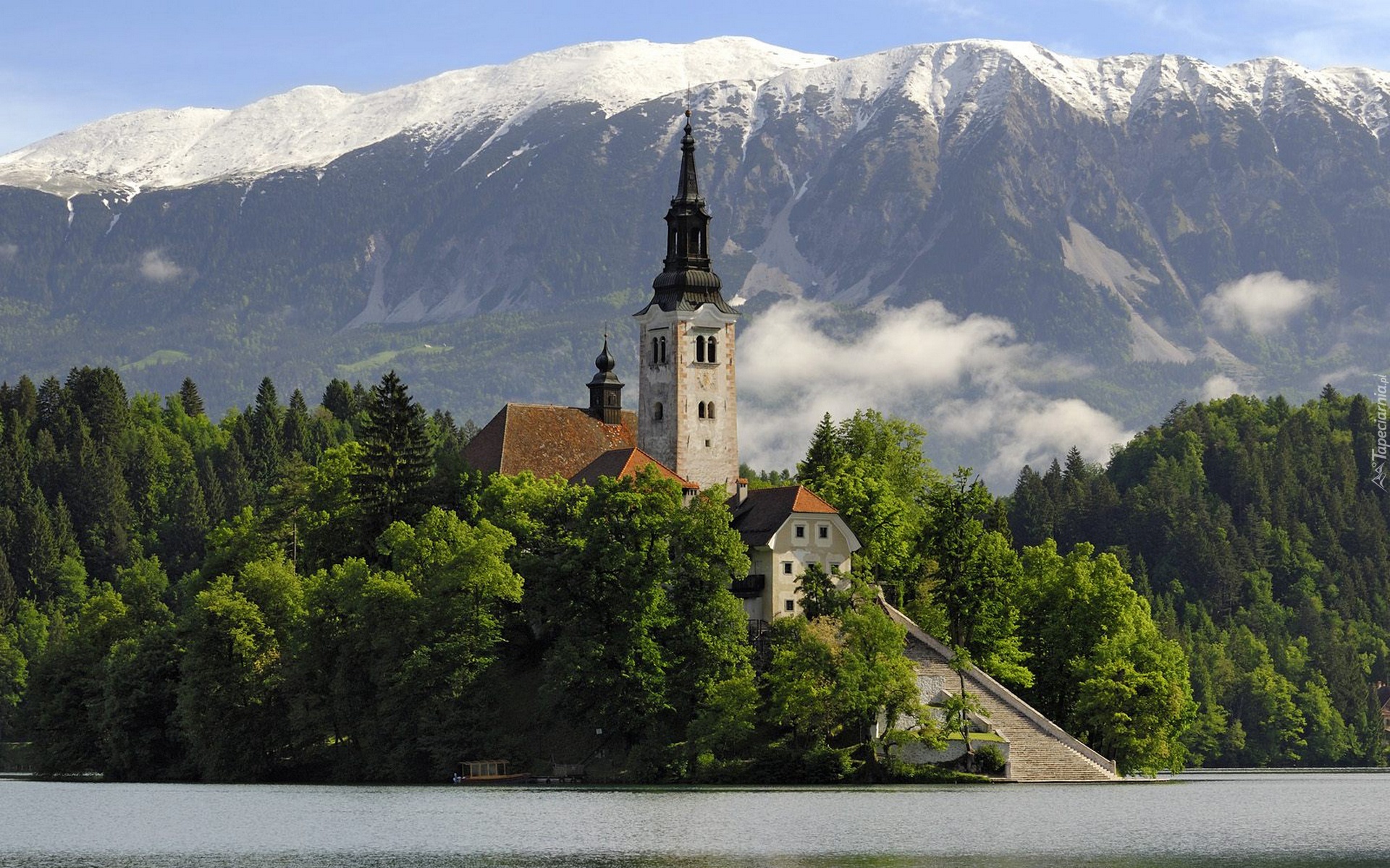 Edytor tapety: Góry, Rzeka, Lasy, Kościółek