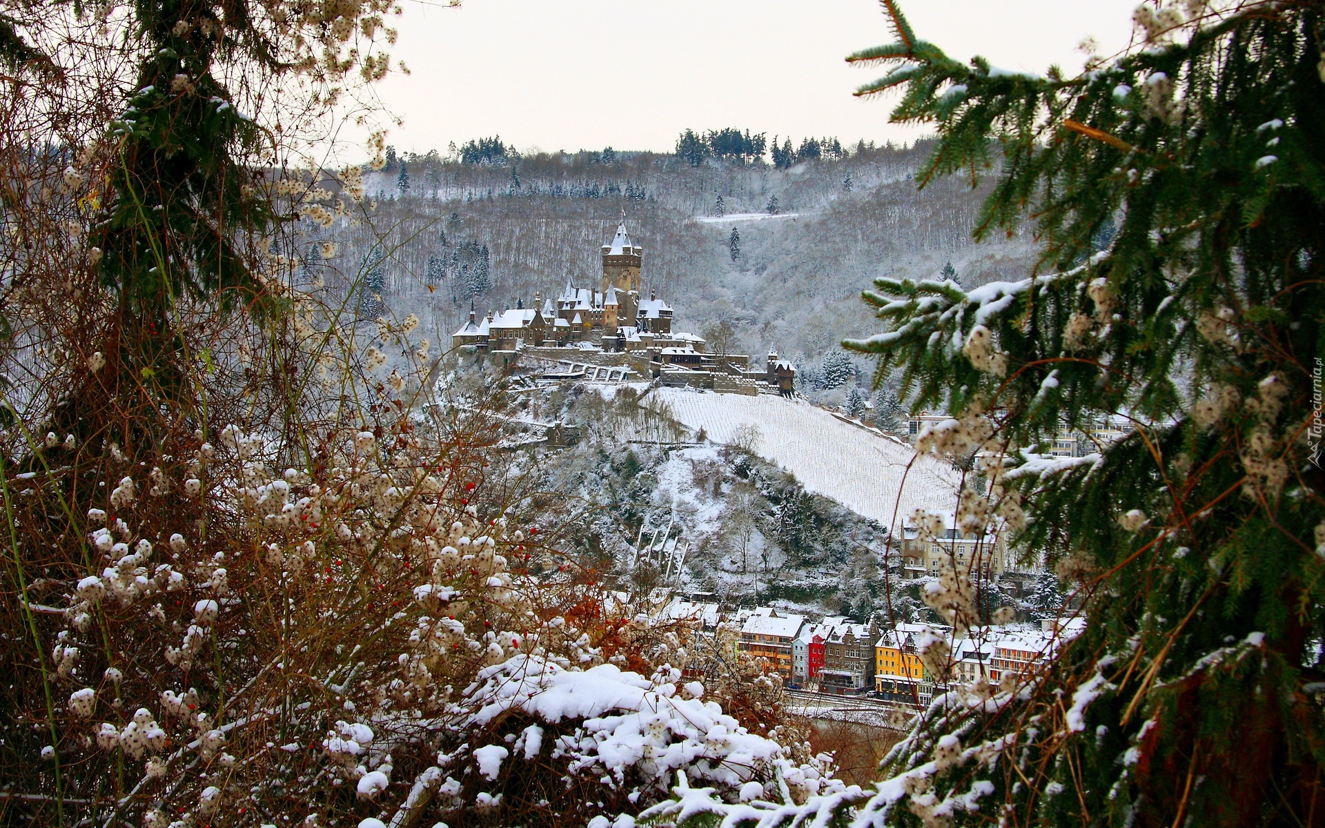 Edytor tapety: Góra, Zamek, Zima, Drzewa