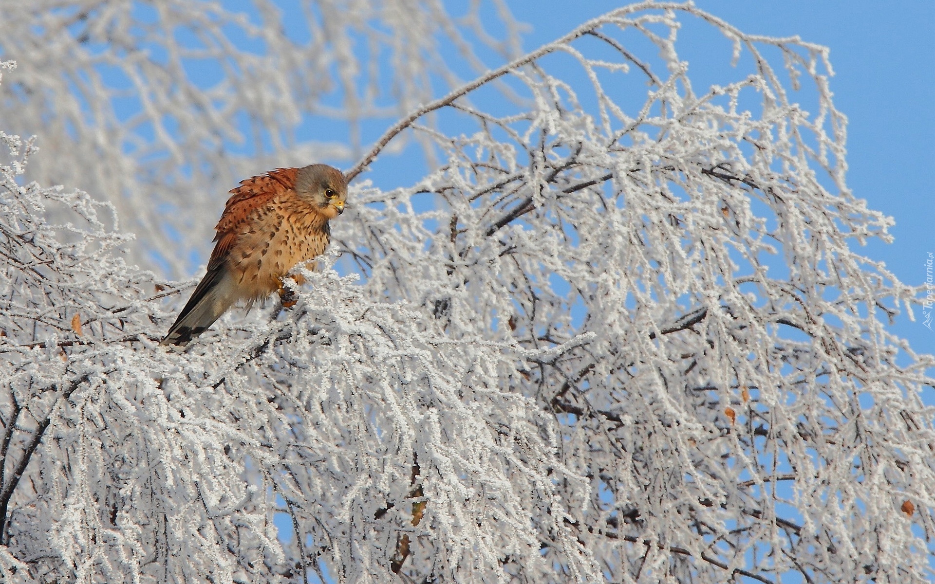 Edytor tapety: Ptak, Pustułka, Zima, Drzewo