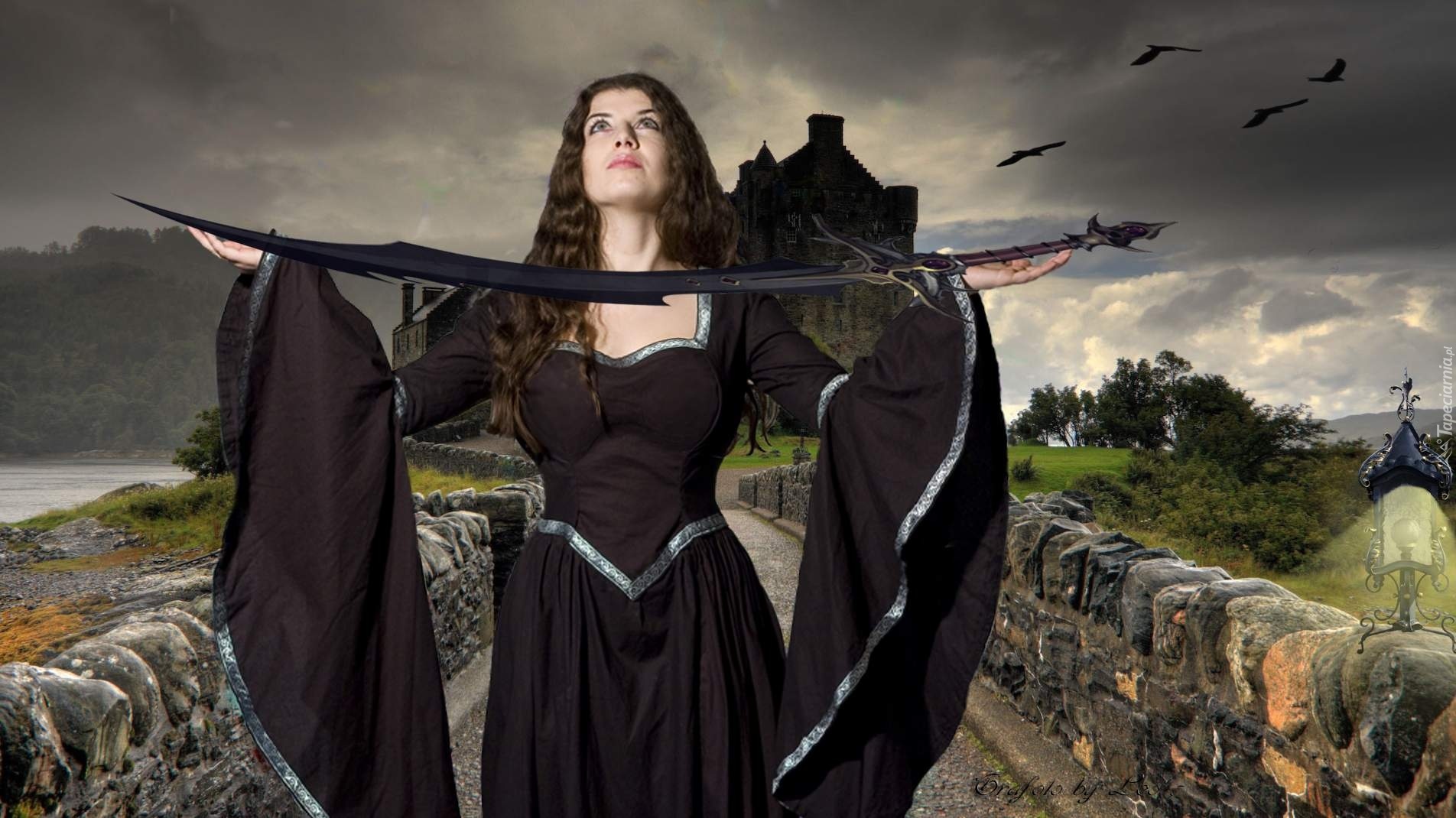 Edytor tapety: Kobieta, Miecz, Suknia, Gotyk