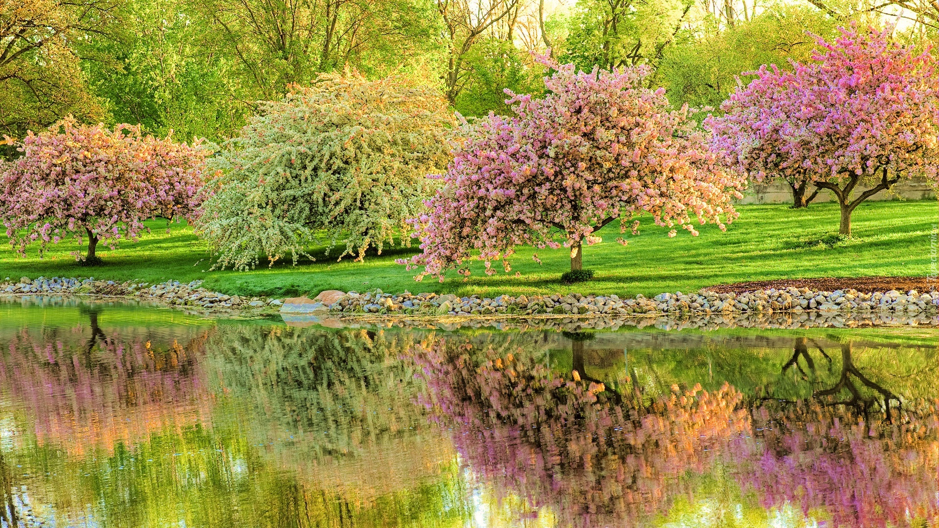 Edytor tapety: Kwitnące, Drzewka, Rzeka, Park