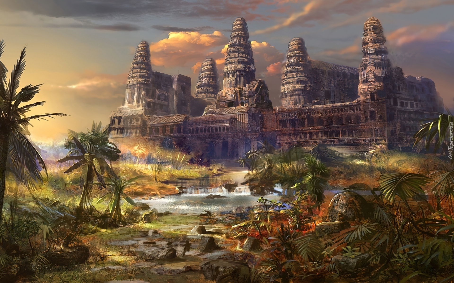 Edytor tapety: Ruiny, Zamku, Wodospad, Drzewa, Obraz