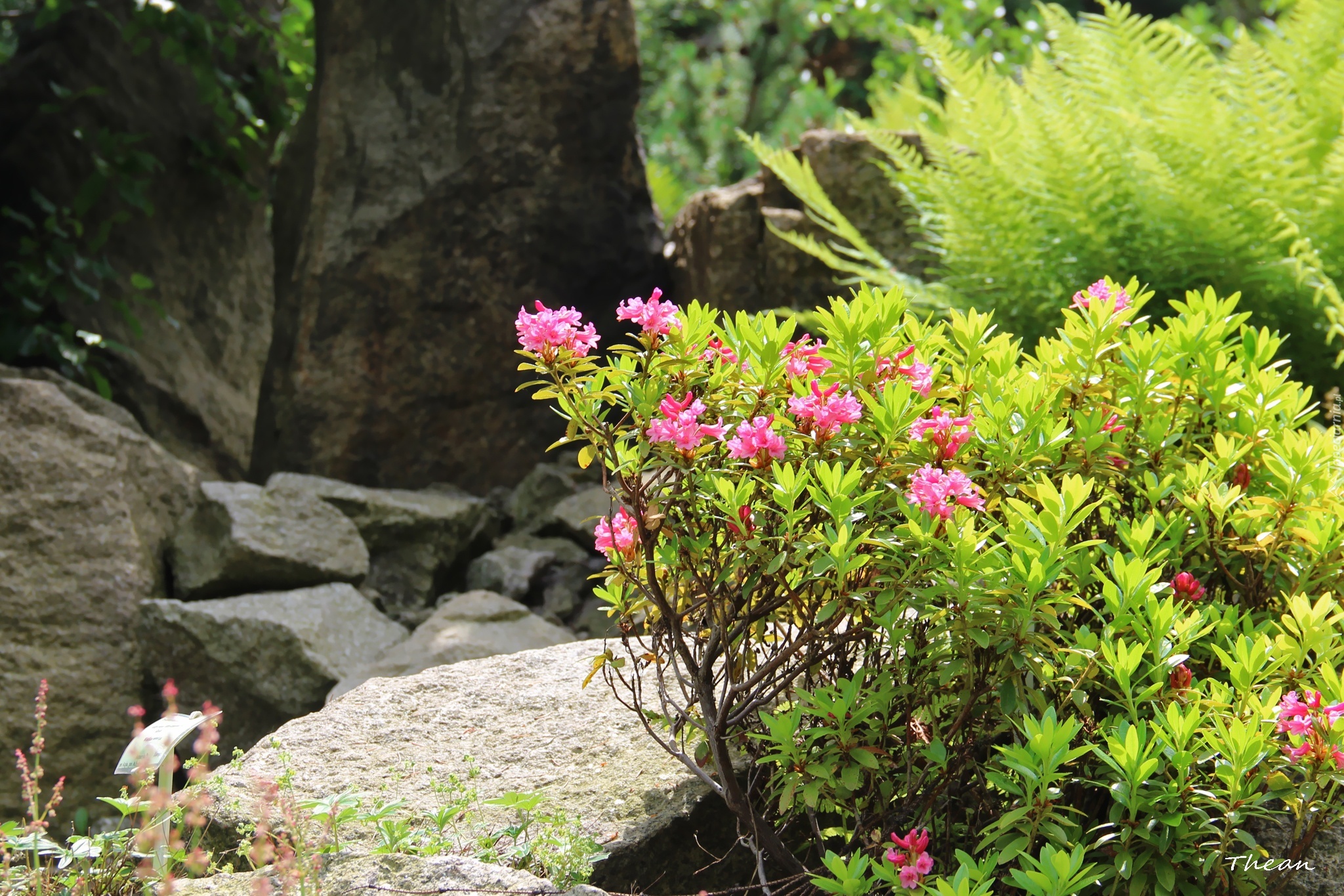 Edytor tapety: Różowe, Kwiaty, Krzewy, Kamienie