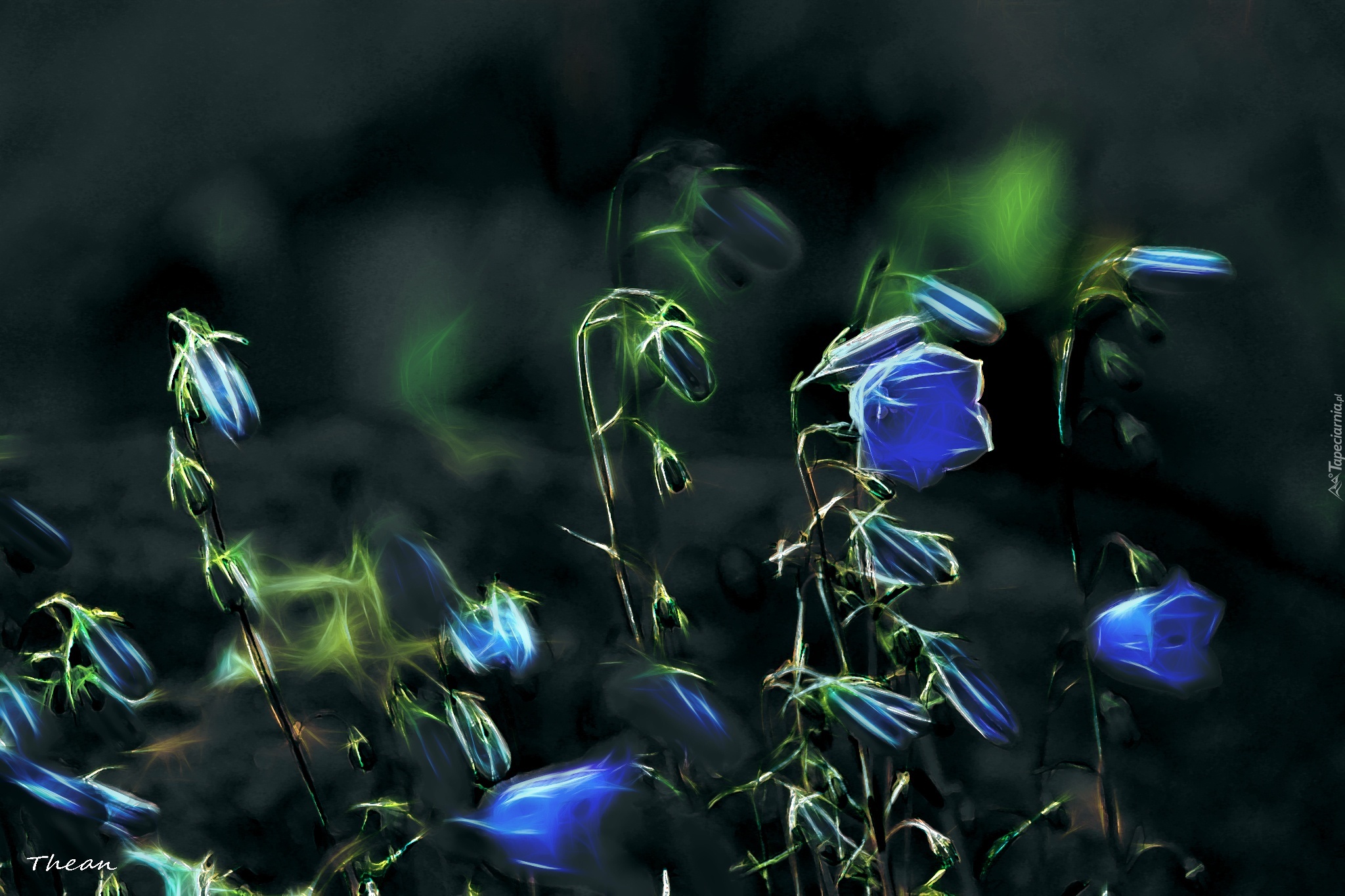 Edytor tapety: Niebieskie, Kwiatki, Fractalius