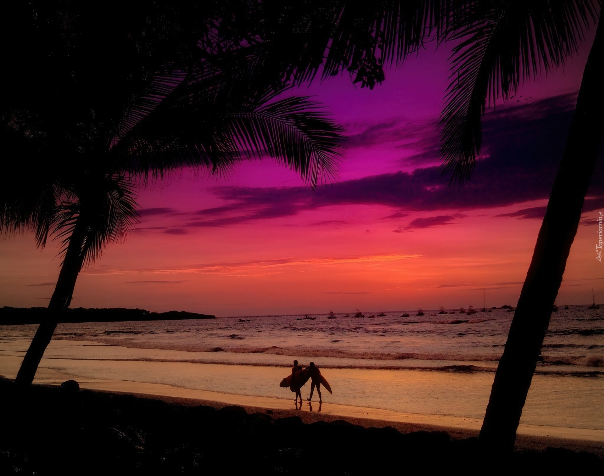 Edytor tapety: Morze, Palmy, Zachód, Słońca