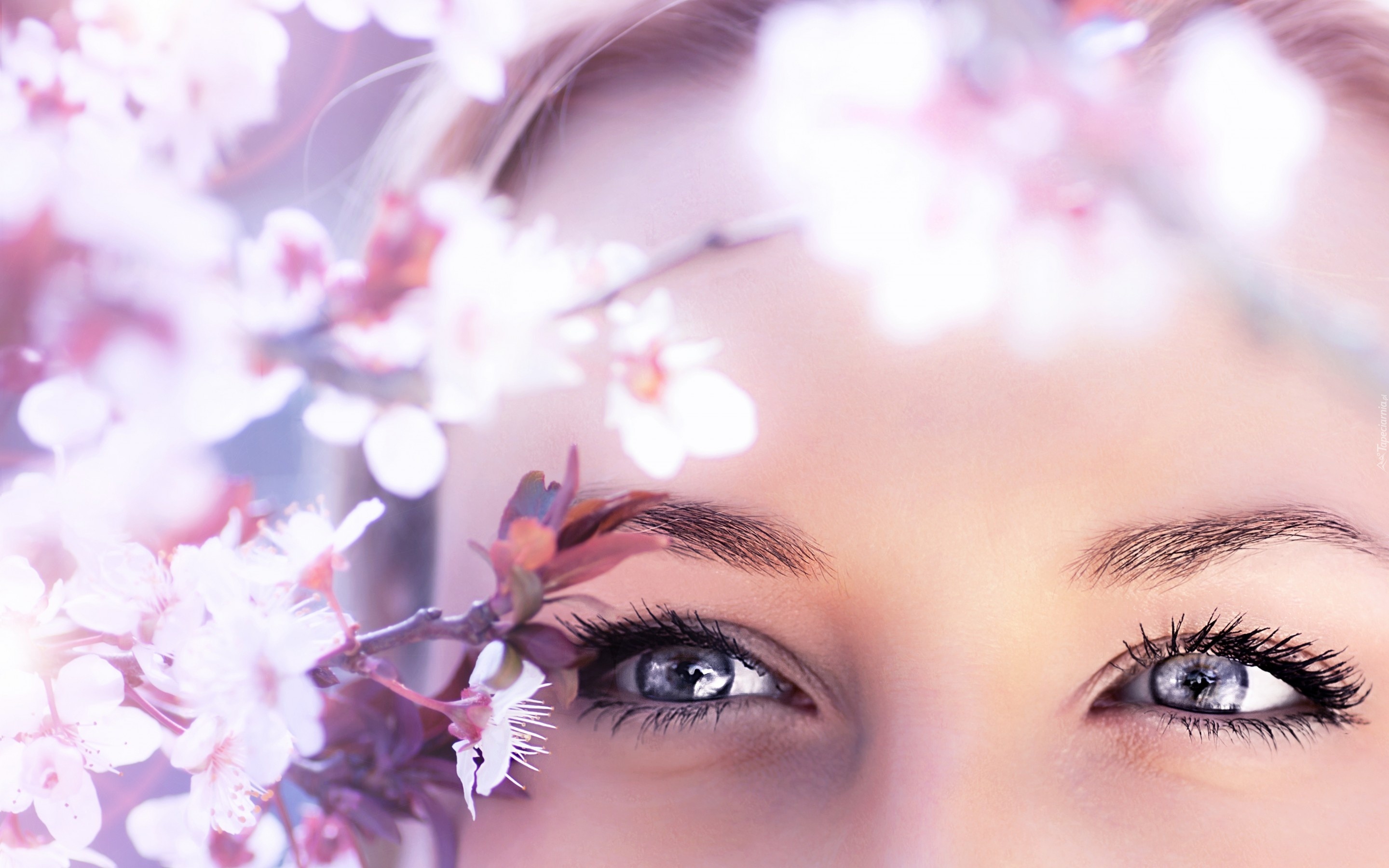 Edytor tapety: Oczy, Kobiety, Kwitnące, Drzewa