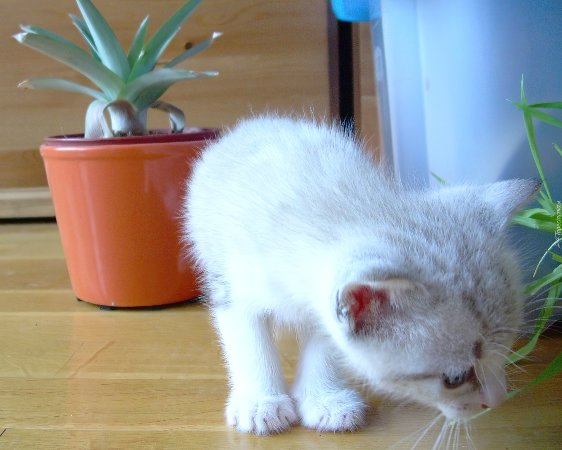 Edytor tapety: Mały, Biały, Kotek, Doniczka