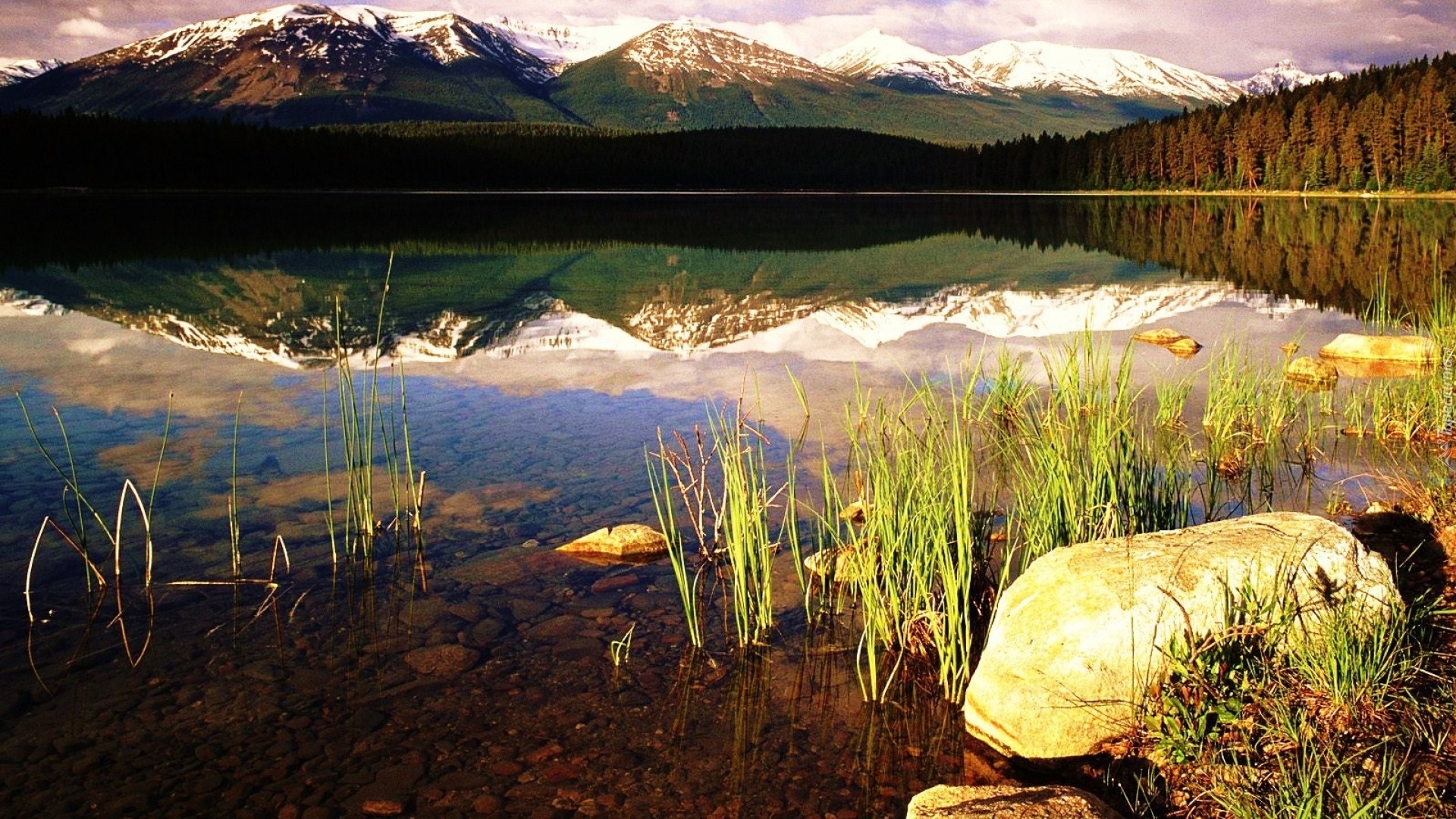 Edytor tapety: Góry, Jezioro, Las, Odbicie