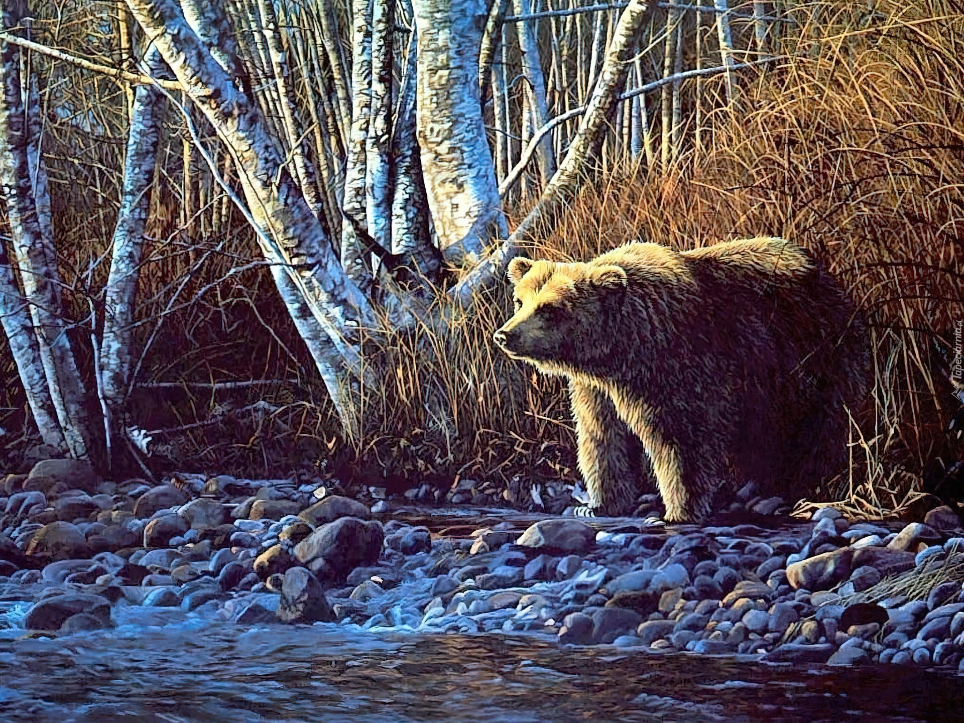 Edytor tapety: Niedźwiedź, Brzoza, Rzeka