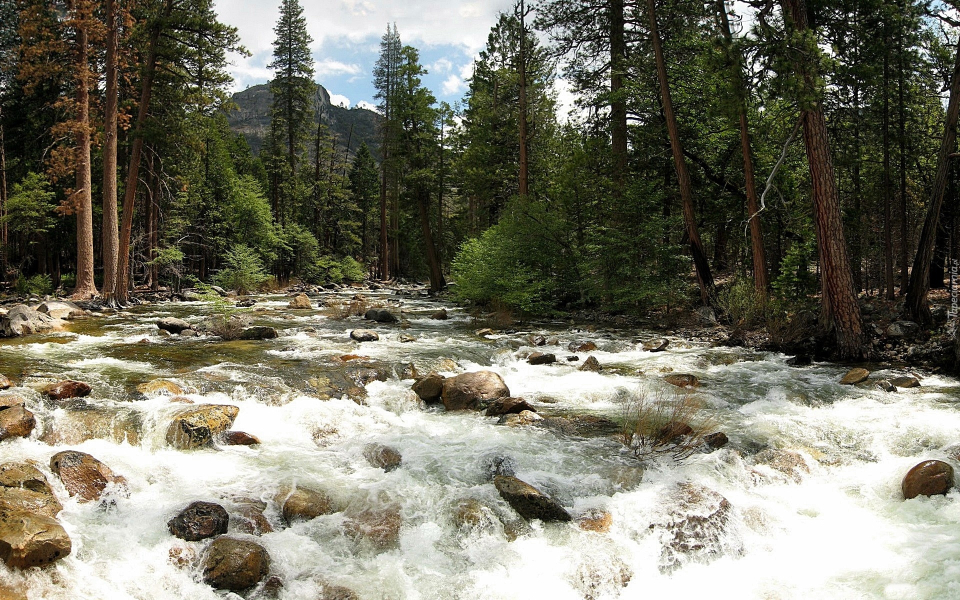 Edytor tapety: Las, Rwąca, Rzeka, Kamienie
