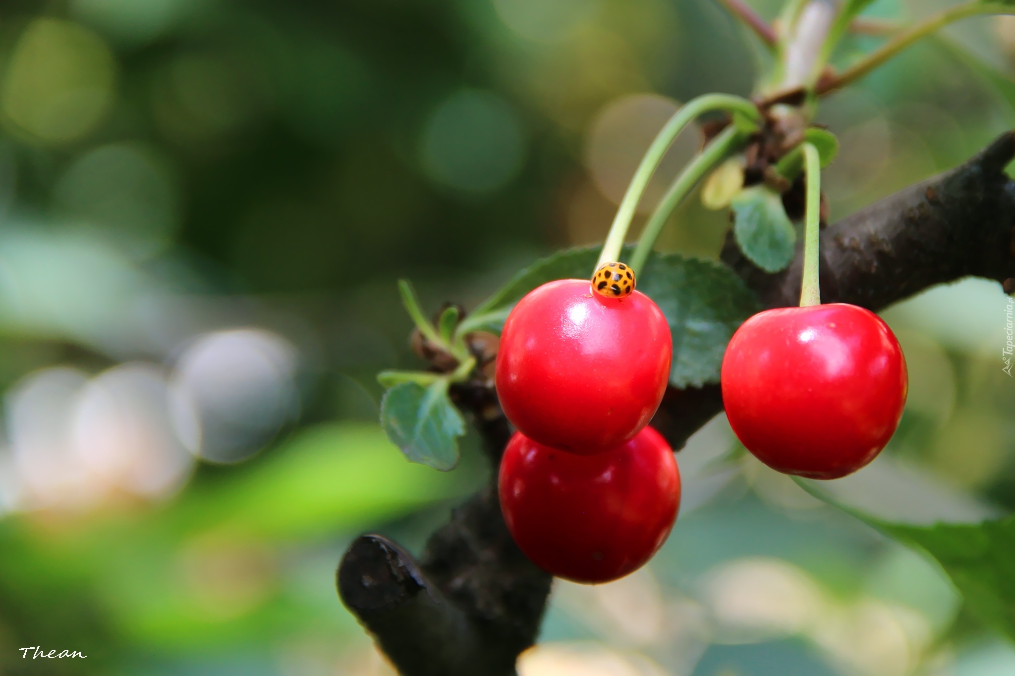 Edytor tapety: Dojrzewające, Czerwone, Wiśnie, Biedronka