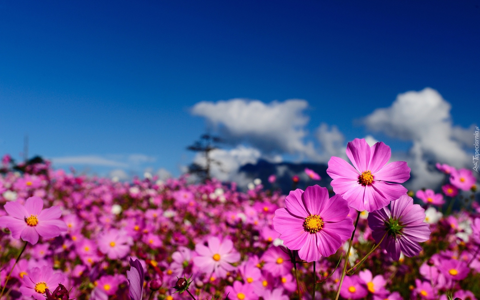 Edytor tapety: Fioletowe, Polne, Kwiatuszki, Niebo