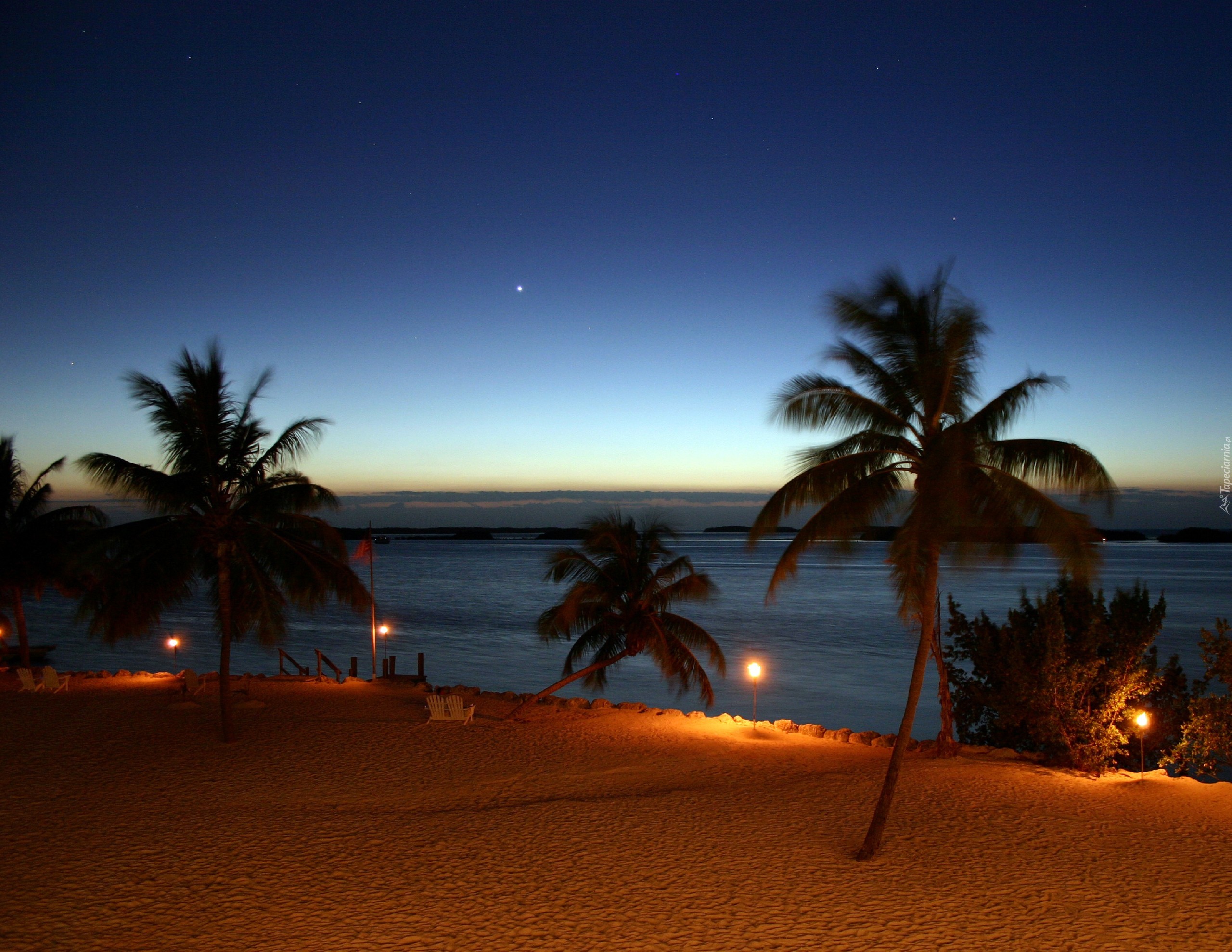 Edytor tapety: Morze, Plaża, Palmy, Noc