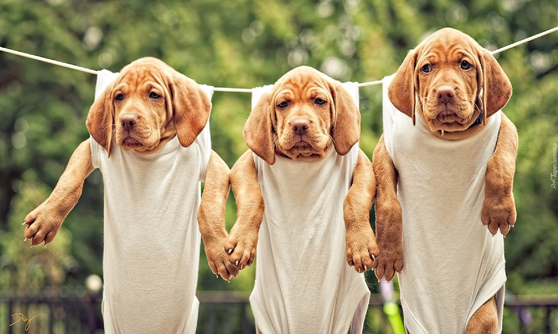 Edytor tapety: Trzy, Pieski, Na, Sznurku, Dog de Bordeaux