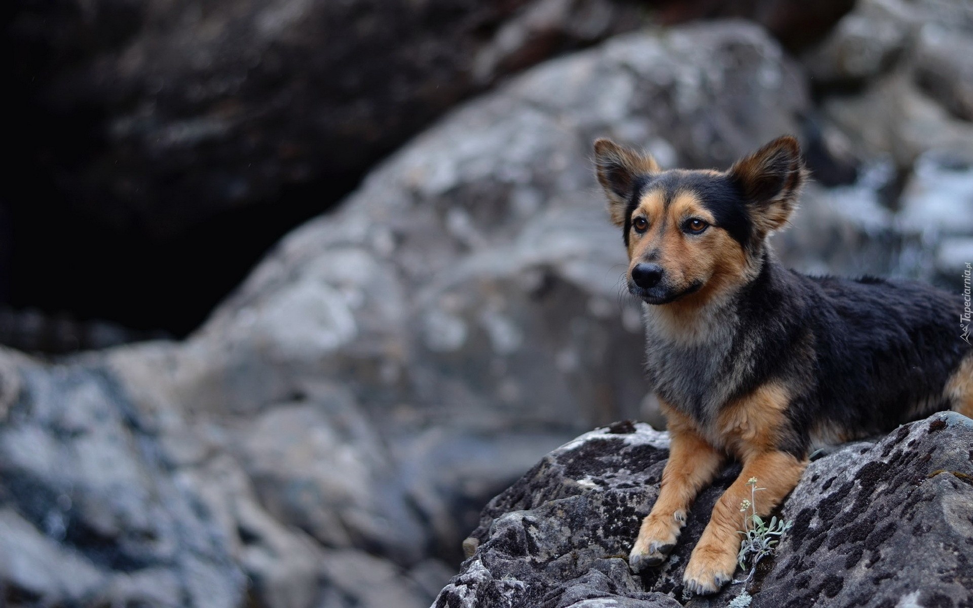 Edytor tapety: Piesek, Skały