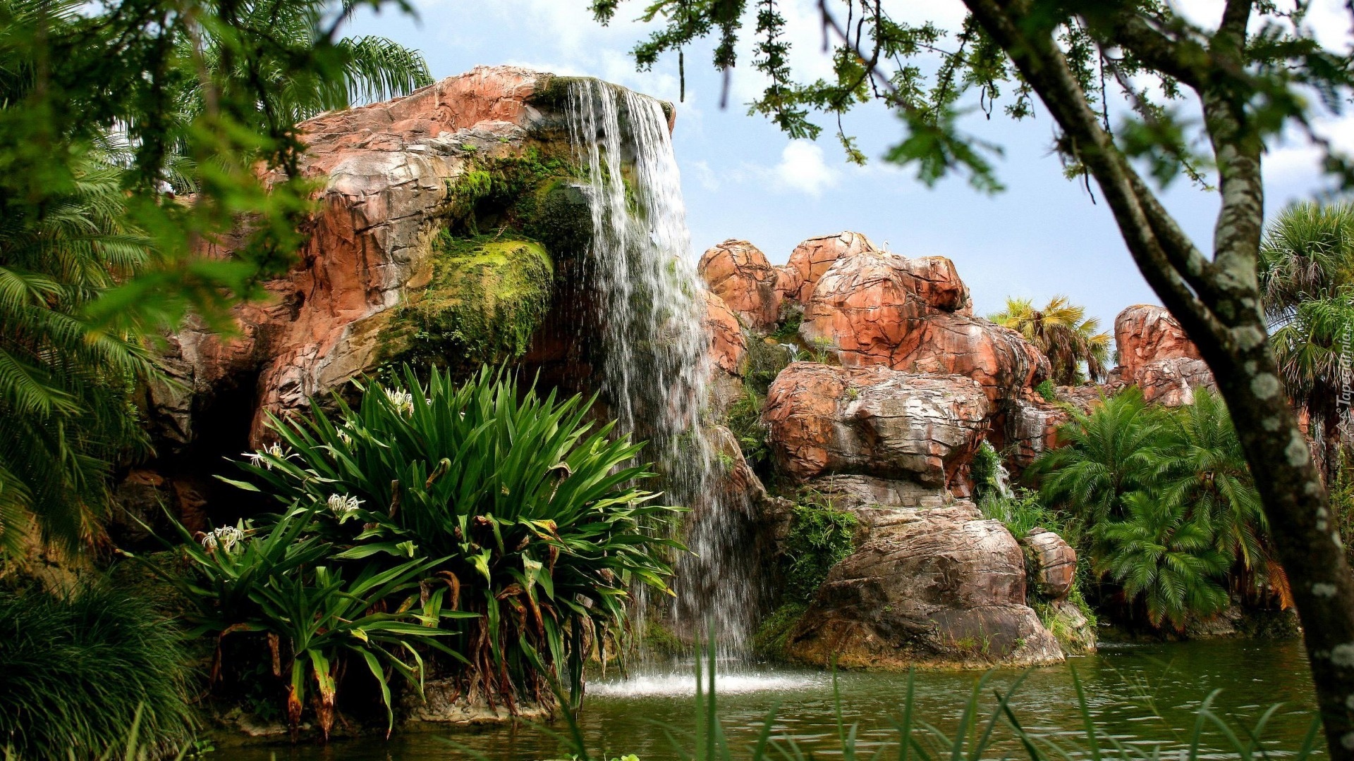 Edytor tapety: Wodospad, Skały, Rośliny