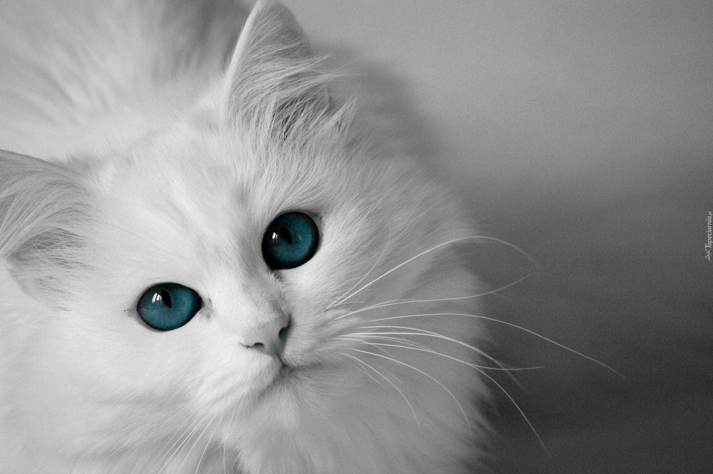 Edytor tapety: Biały, Kot, Błękitne, Oczy