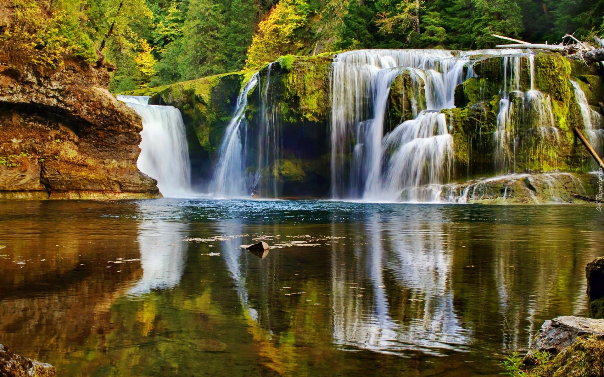 Edytor tapety: Las, Skały, Wodospad, Jeziorko