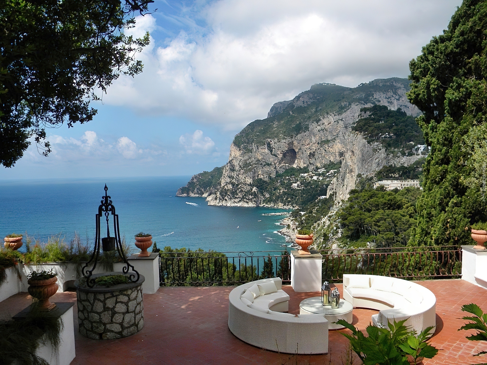 Edytor tapety: Góry, Morze, Zatoka, Taras, Widok