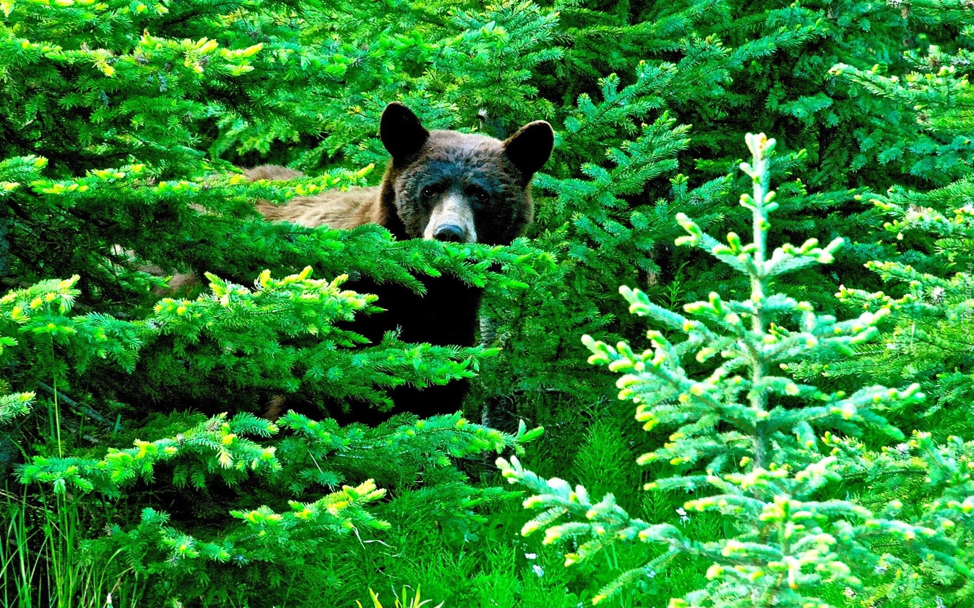 Edytor tapety: Niedźwiedź, Pomiędzy, Choinkami