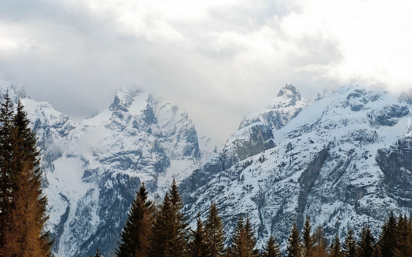 Edytor tapety: Chmury, Góry, Drzewa, Zima