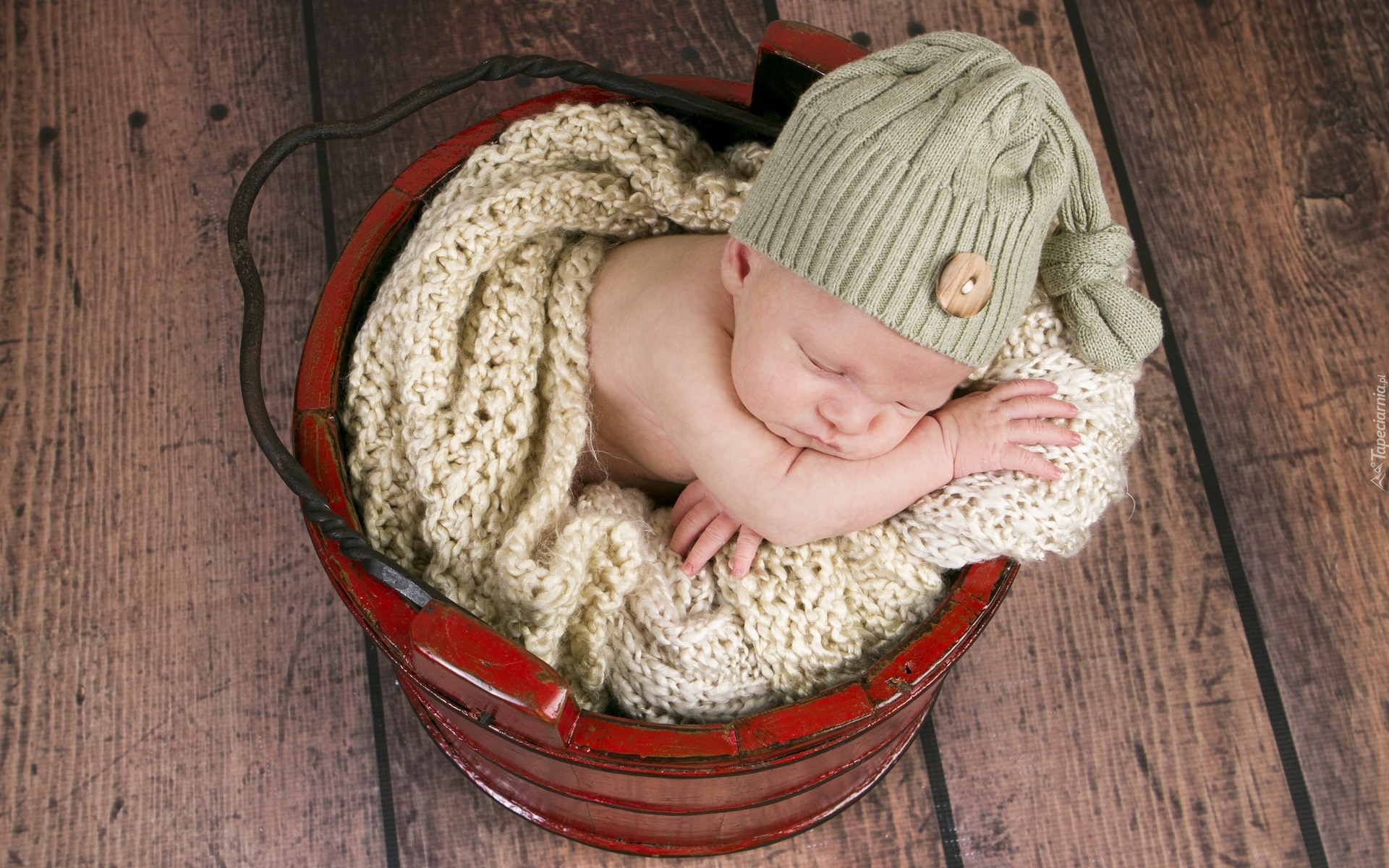 Edytor tapety: Śpiące, Niemowle, Wiaderko