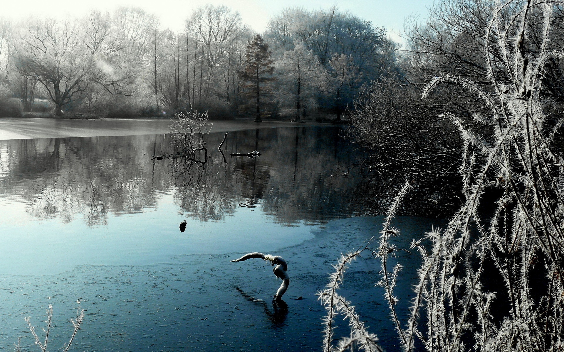 Edytor tapety: Park, Jezioro, Drzewa, Zima