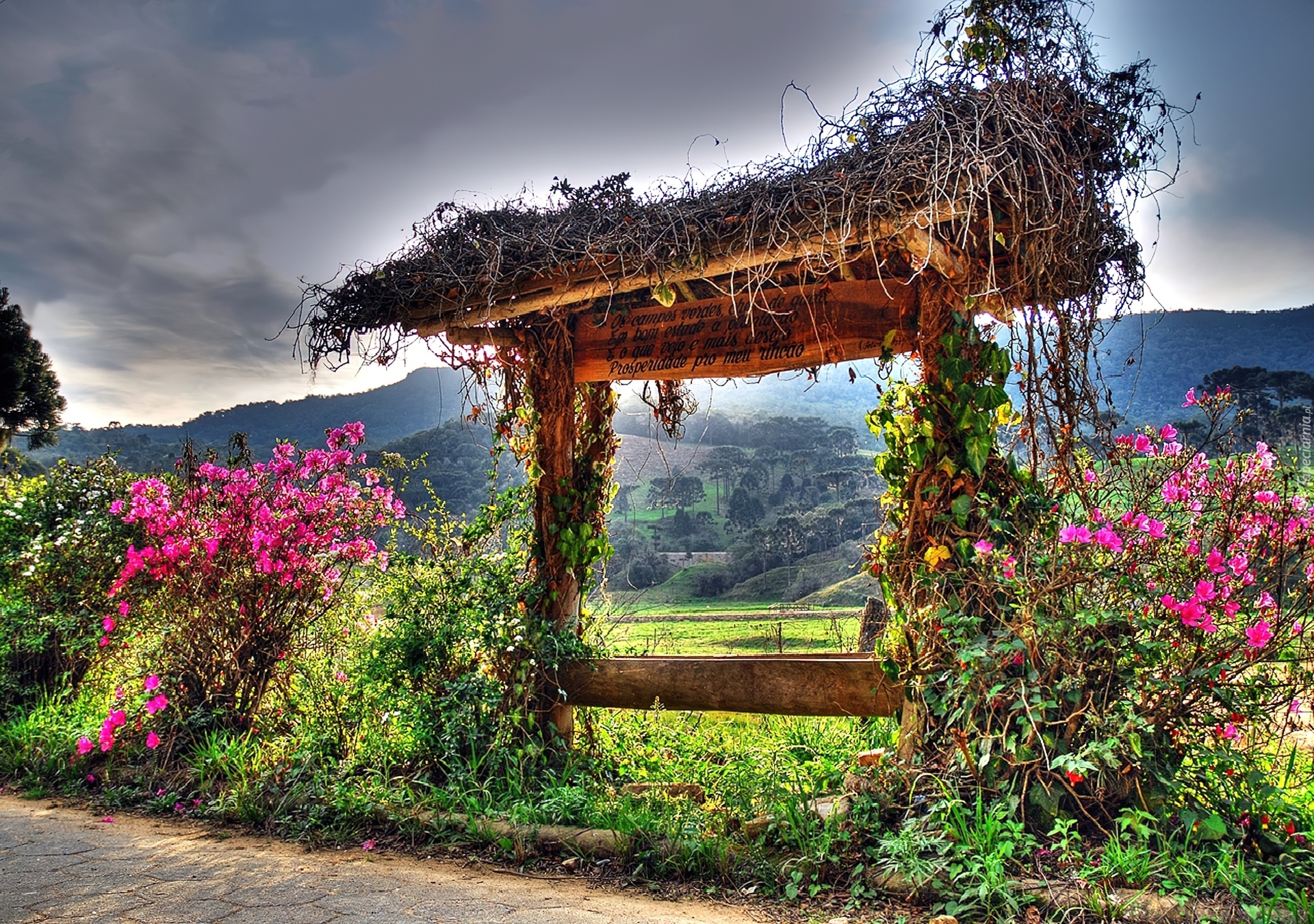 Edytor tapety: Góry, Brama, Powitalna, Kwiaty