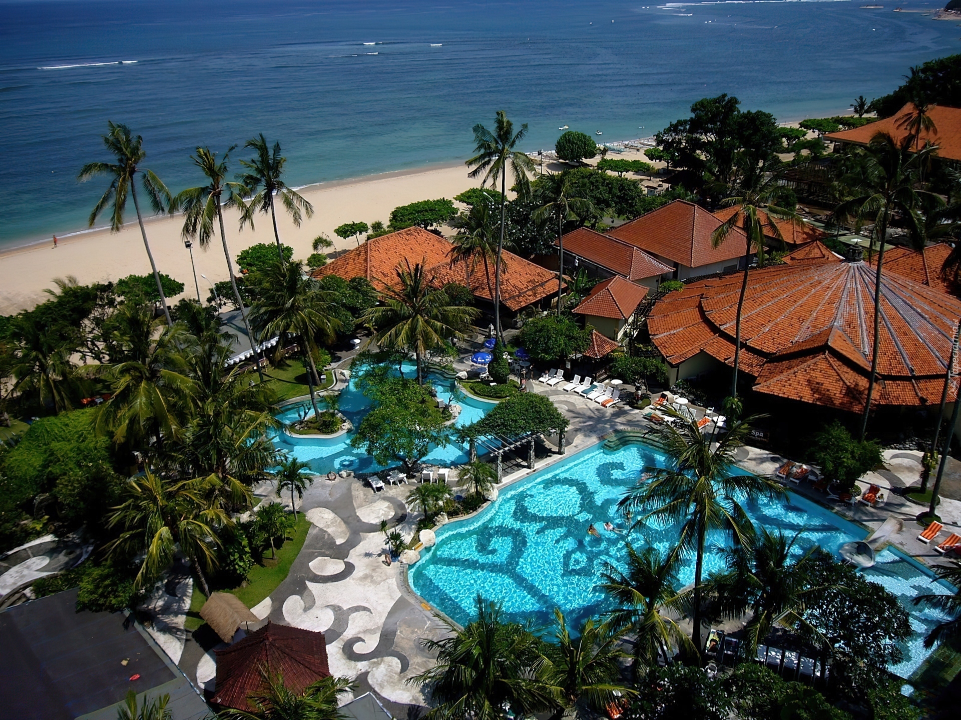 Edytor tapety: Hotel, Basen, Palmy, Morze