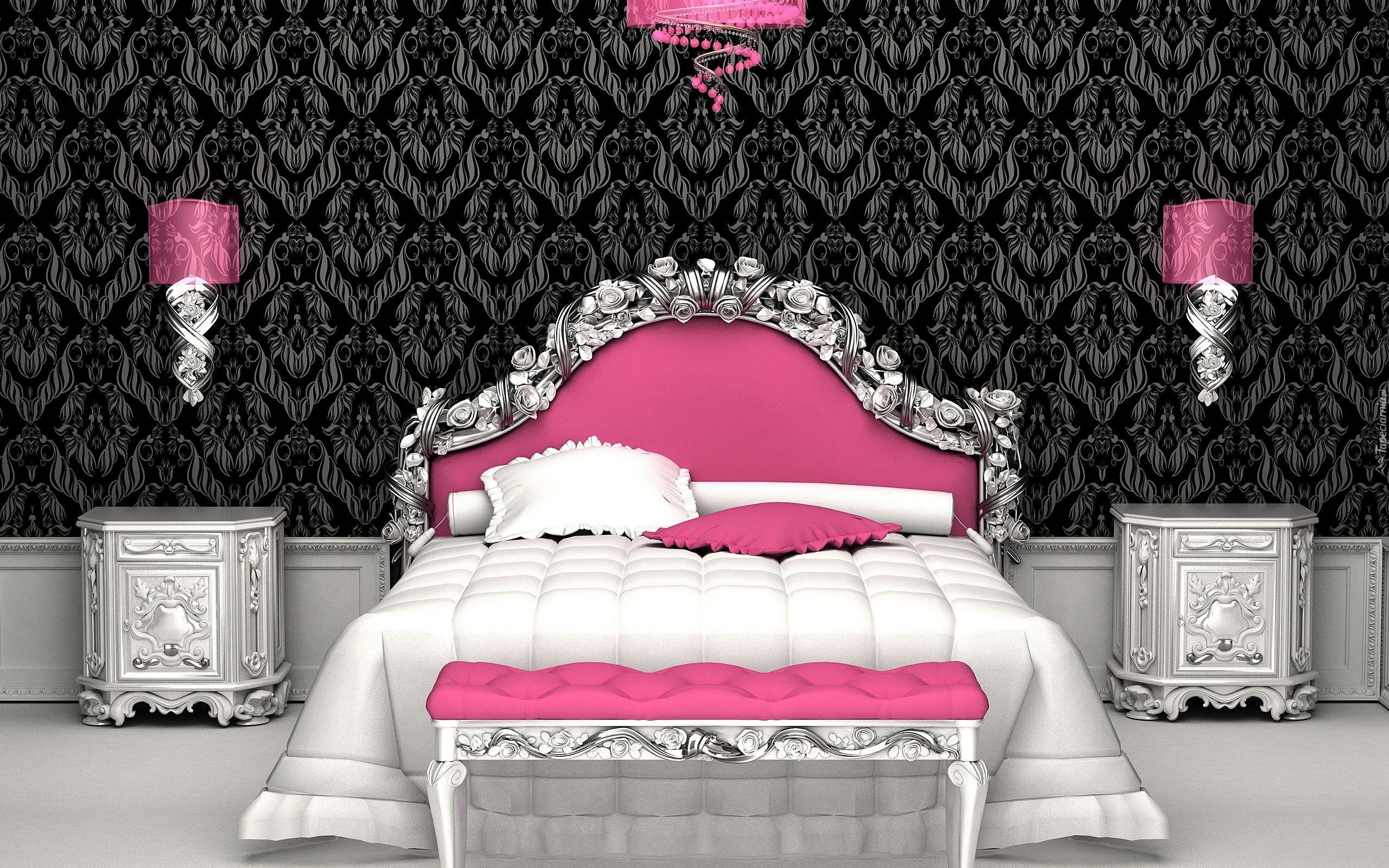 Edytor tapety: Sypialnia, Łóżko, Różowo, Srebrna, Stylistyka