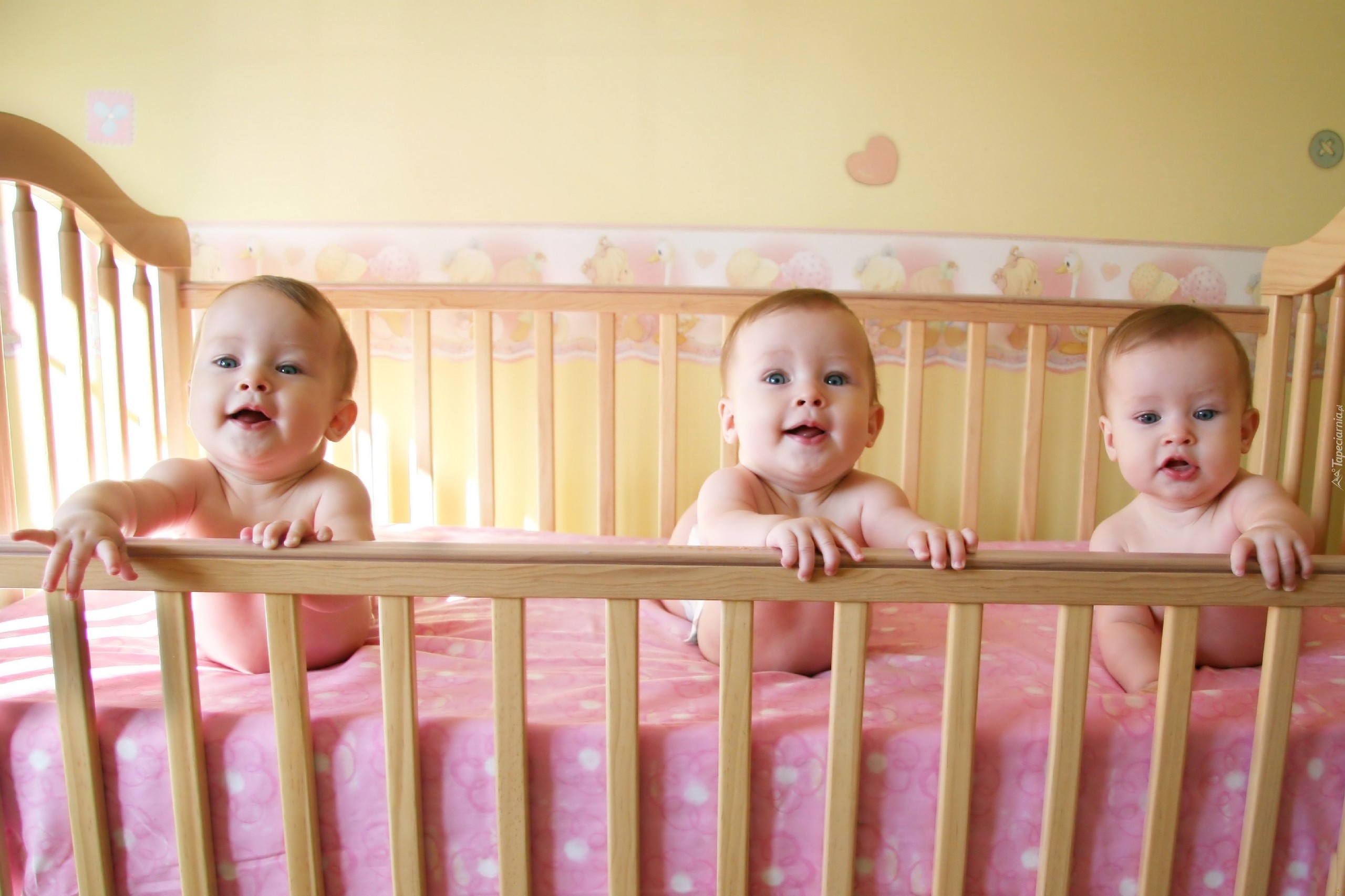 Edytor tapety: Dzieci, Trojaczki, Łóżeczko