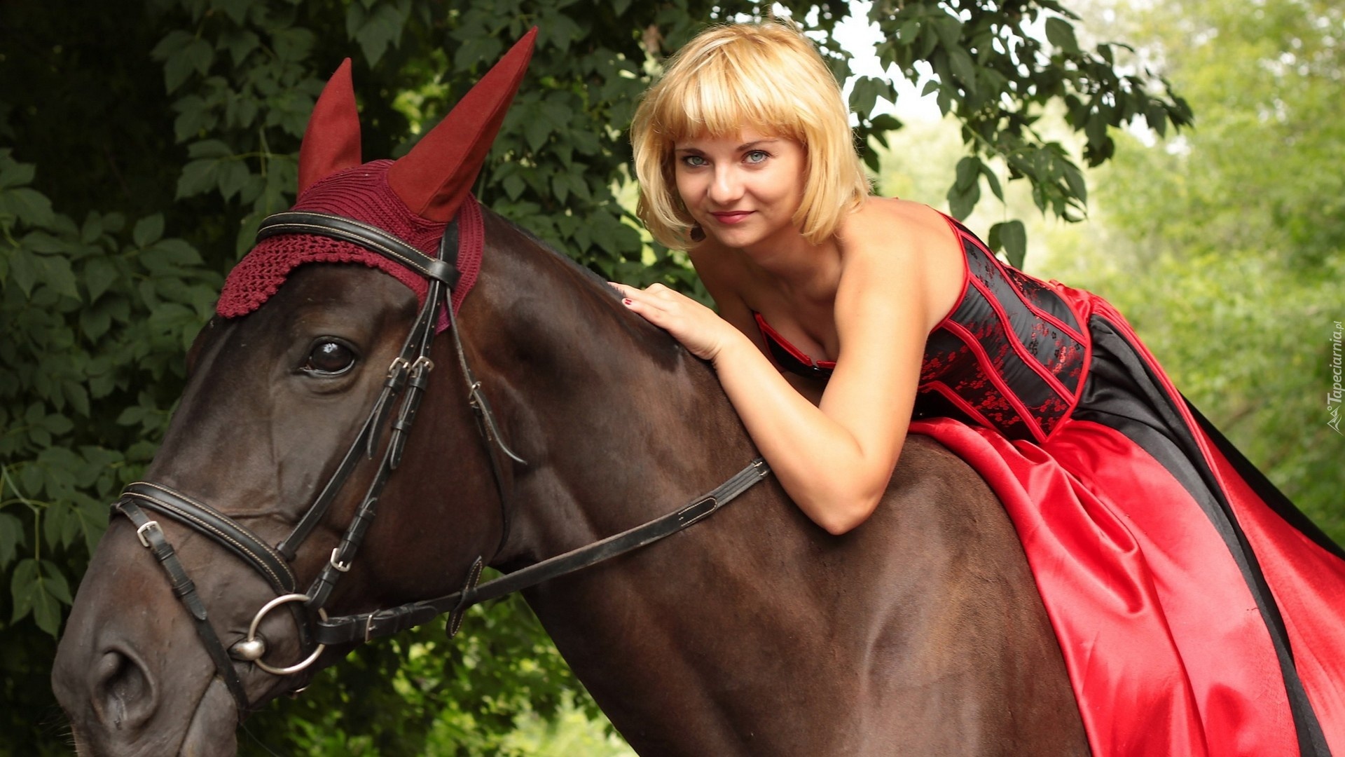 Edytor tapety: Kobieta, Blondynka, Koń, Uszy