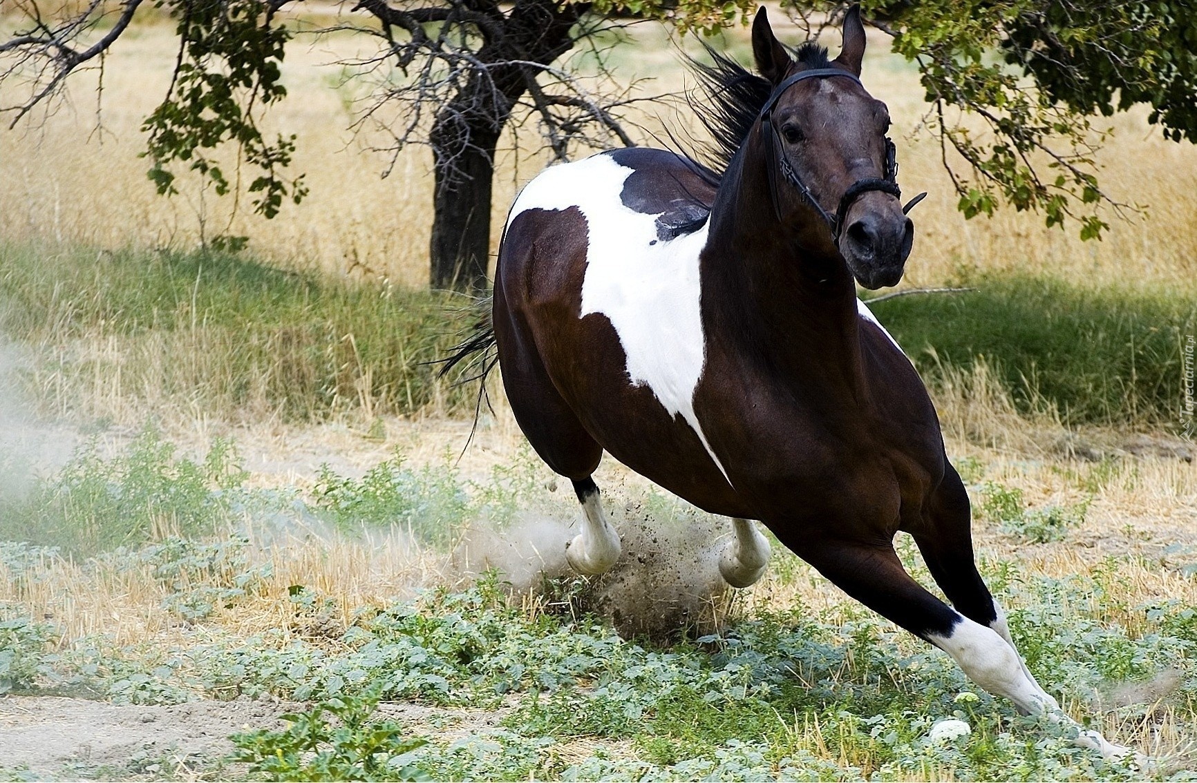 Edytor tapety: Galopujący, Koń, Trawa, Drzewo