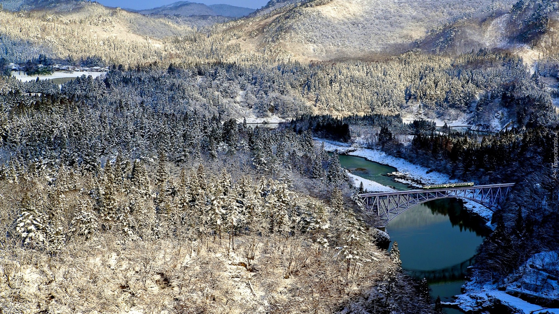 Edytor tapety: Góry, Las, Rzeka, Zima