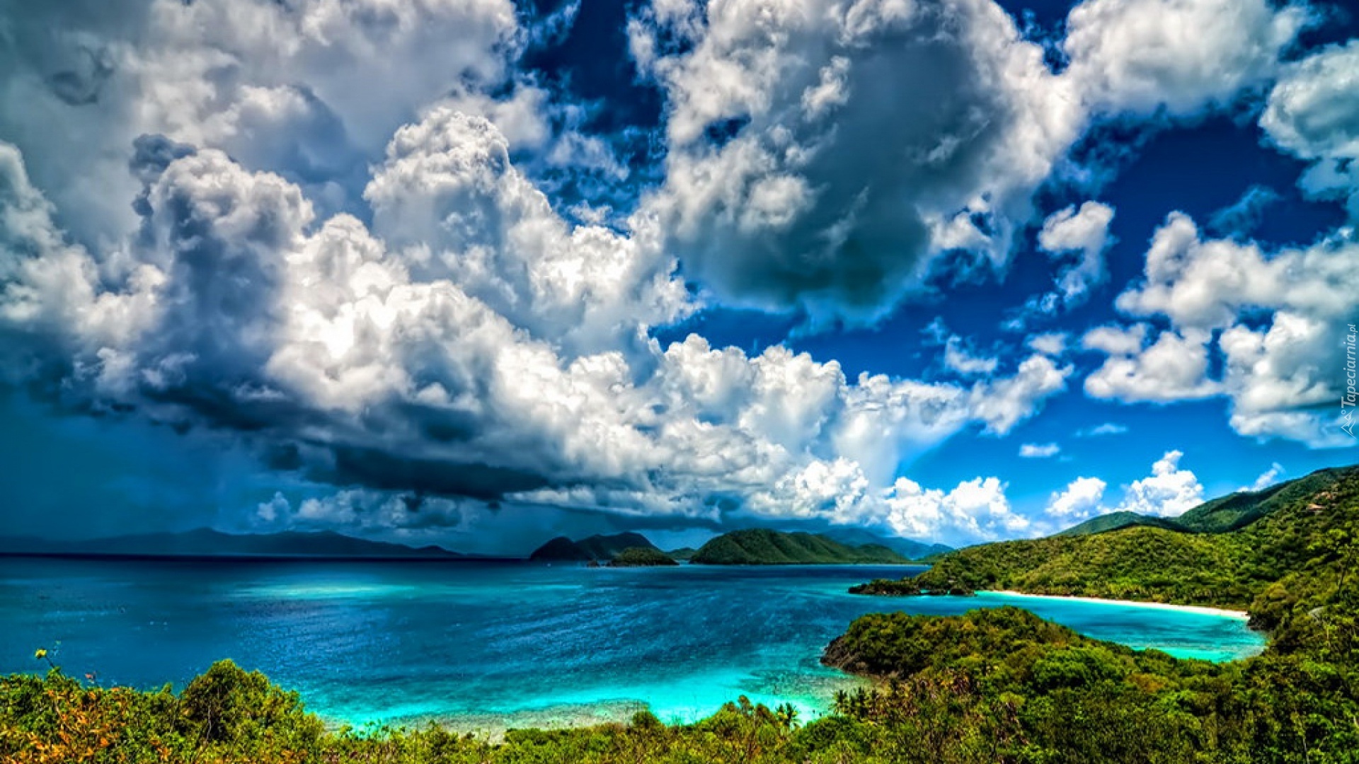 Edytor tapety: Jezioro, Chmury, Wyspa