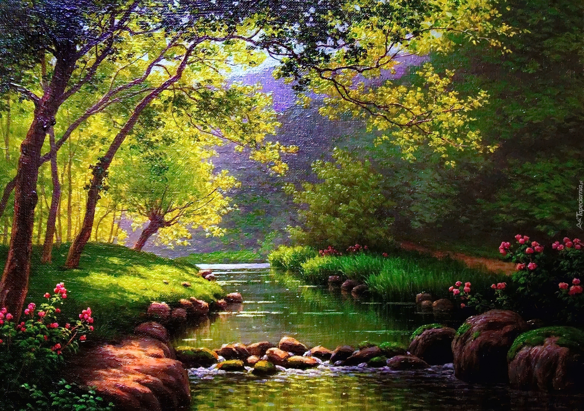 Edytor tapety: Strumyk, Las, Kamienie