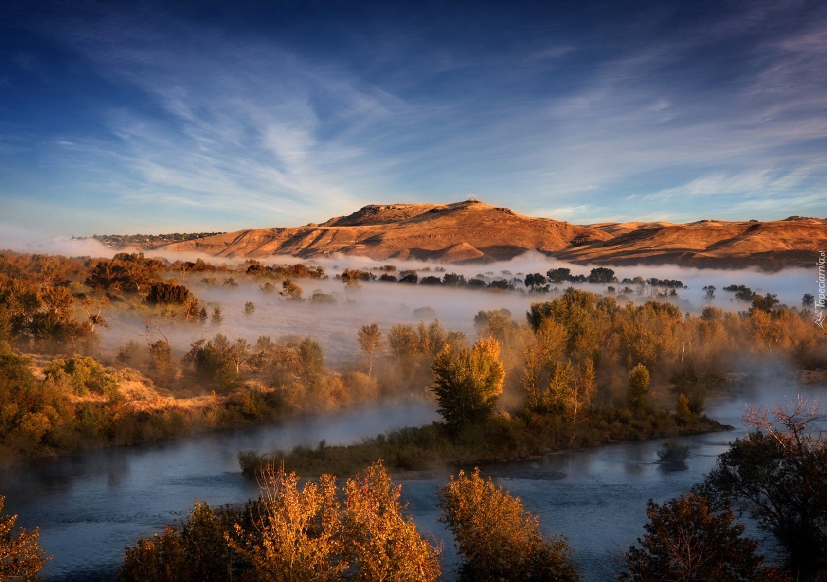 Edytor tapety: Góry, Rzeka, Mgła, Drzewa