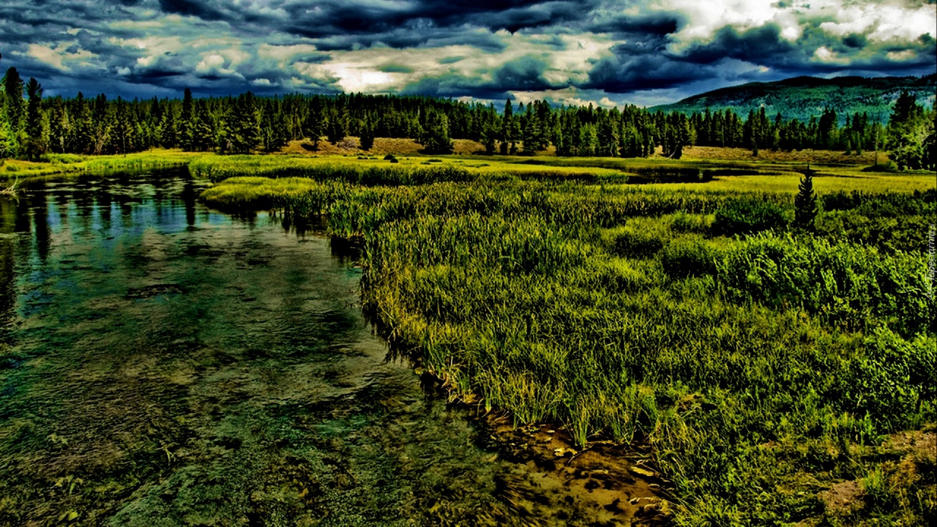 Edytor tapety: Las, Trawa, Chmury