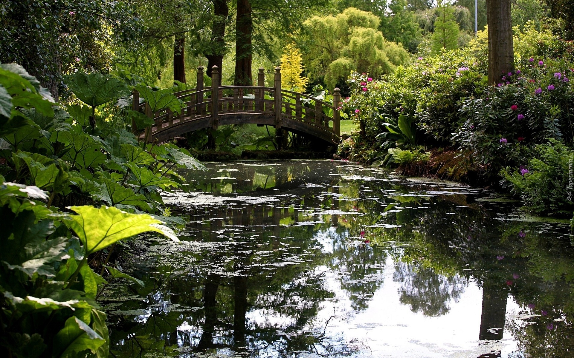 Edytor tapety: Park, Staw, Mostek, Rośliny