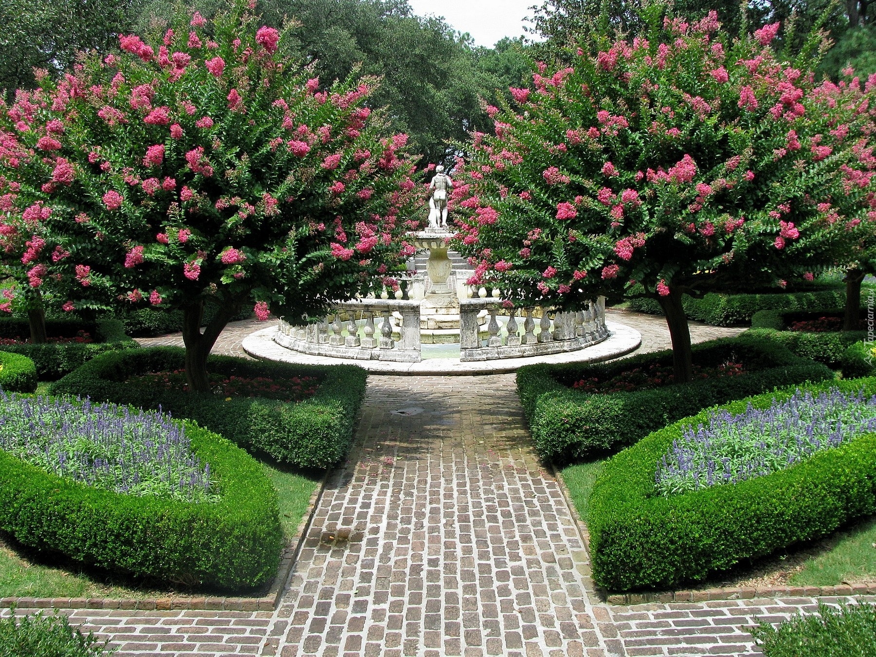 Edytor tapety: Park, Żywopłoty, Kwitnące, Drzewa, Posążek