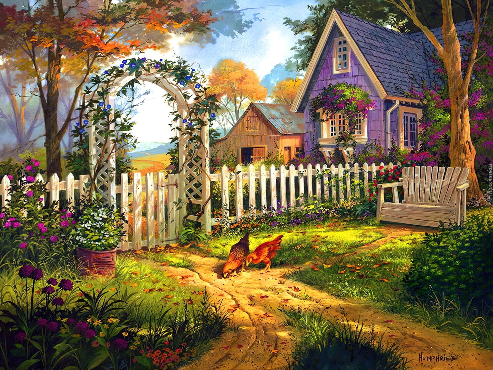 Edytor tapety: Dom, Podwórko, Ogród, Ławka