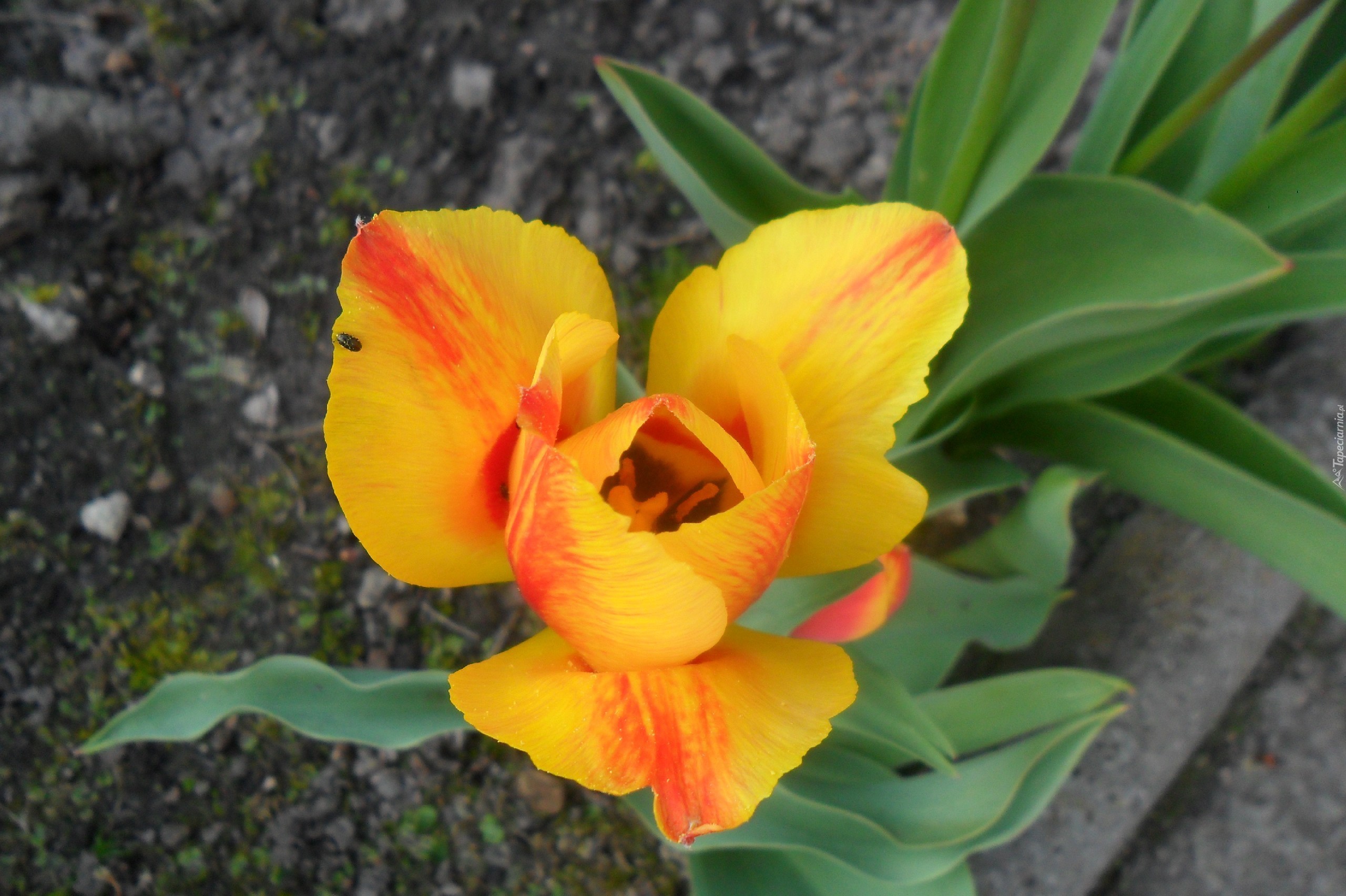 Edytor tapety: Żółto-pomarańczowy, Tulipan, Zielone, Liście