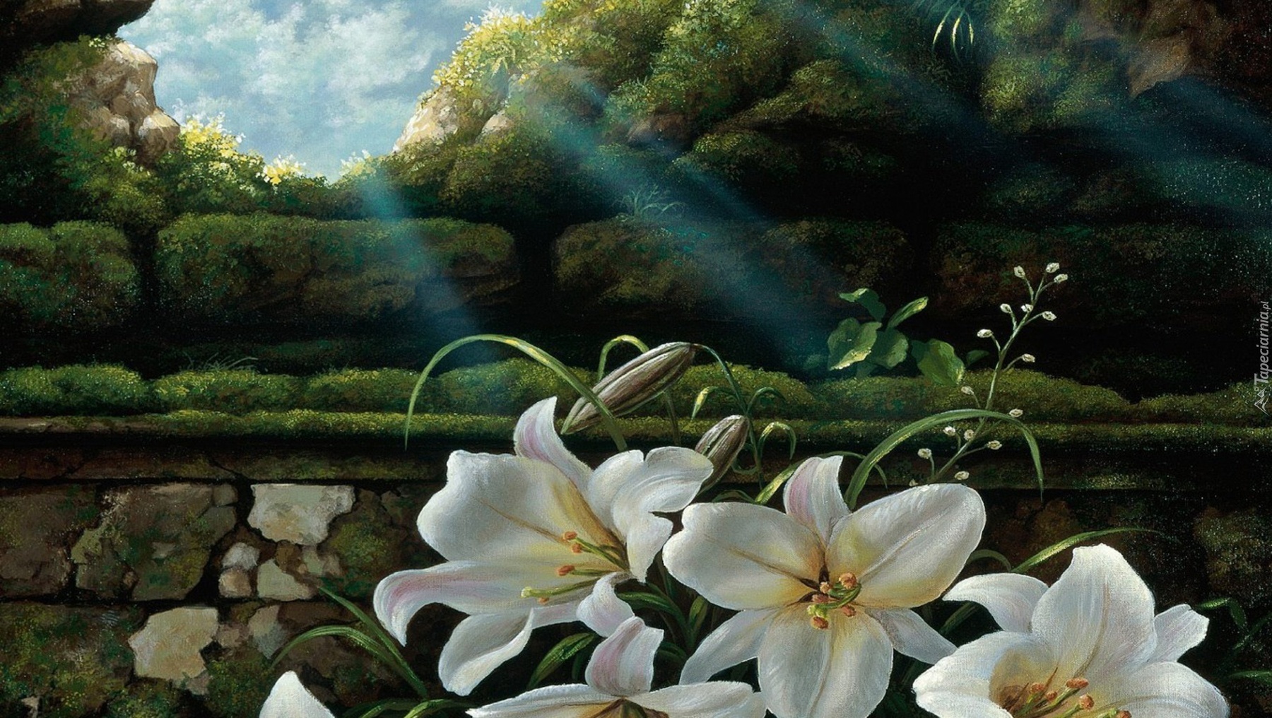 Edytor tapety: Lilie, Przebijające, Światło, Murek