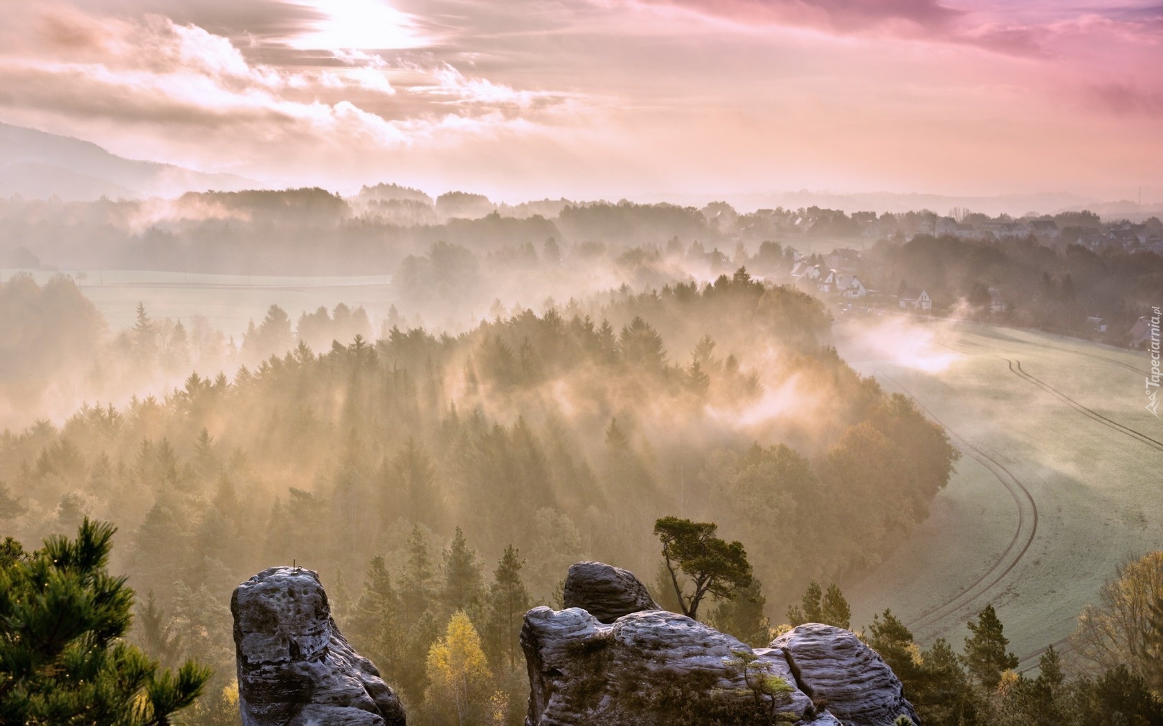 Edytor tapety: Skały, Drzewa, Las, Mgła